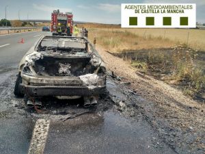 Así quedó un coche en la A-42 tras incendiarse por causas desconocidas