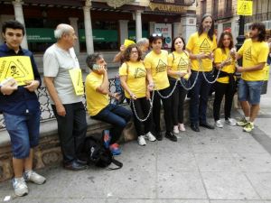 Se encadenan en la plaza de Zocodover de Toledo para protestar por el amianto