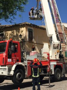 Despejan el tejado de una casa en ruinas en Toledo que suponía un grave riesgo para los peatones (fotos)
