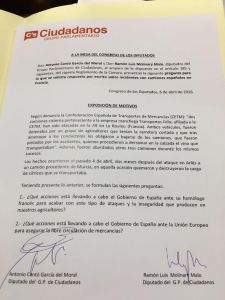 Molinary exige al Gobierno que defienda los derechos de los transportistas tras lo ocurrido en Francia