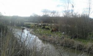 Las vacas pastan entre la basura de plástico que llega por el Guadarrama a Carranque desde Madrid