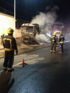 Arde un tráiler pero los Bomberos salvan los Porsche de competición que transportaba