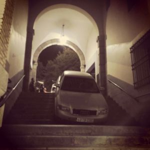 El coche que «quería bajar», en un despiste, por las escaleras de Zocodover, en Toledo