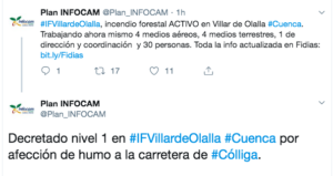 Incendio forestal de nivel 1 en Villar de Olalla (Cuenca)