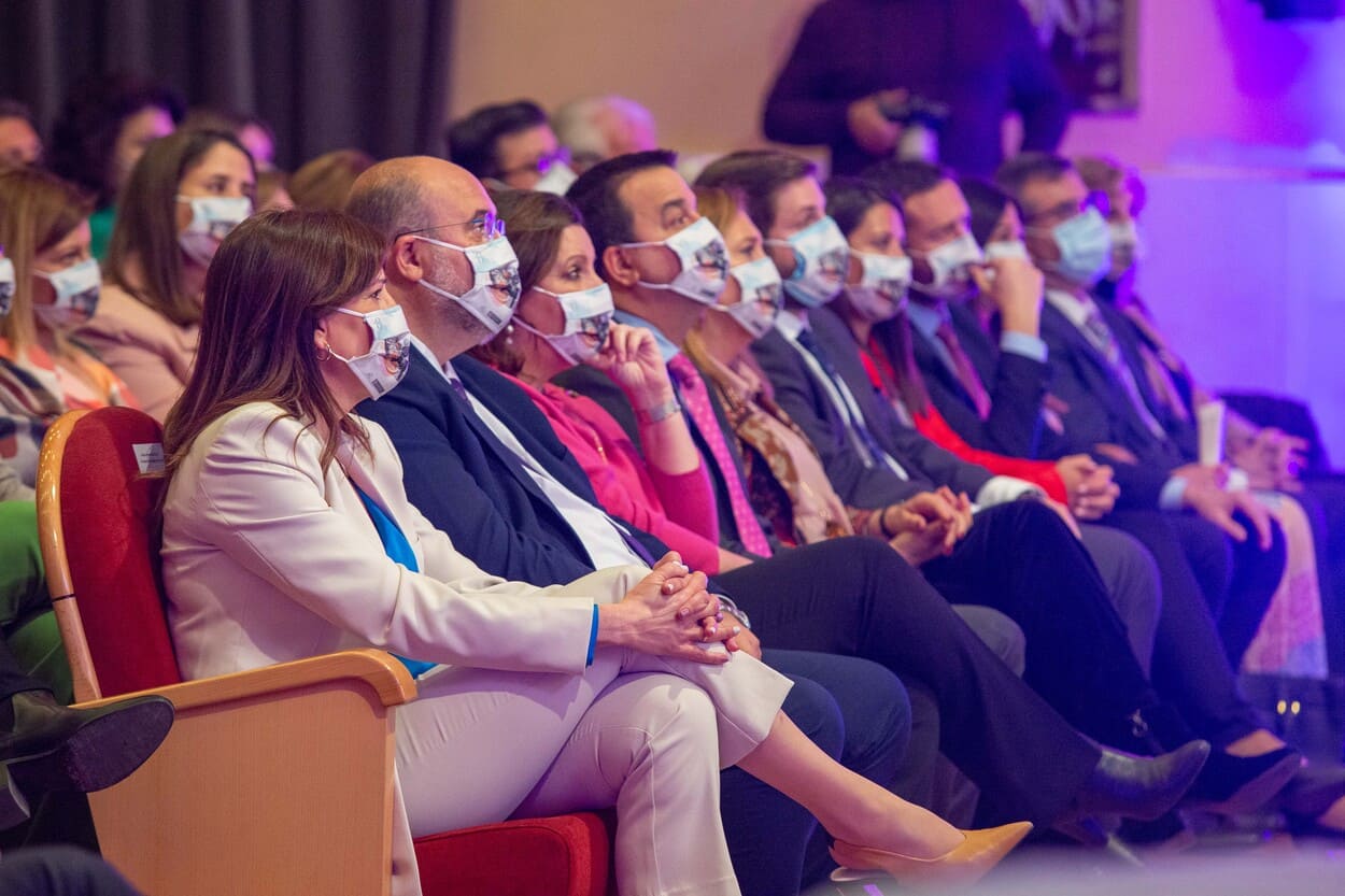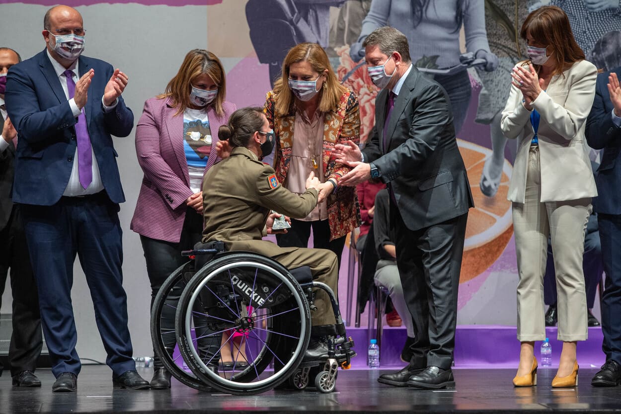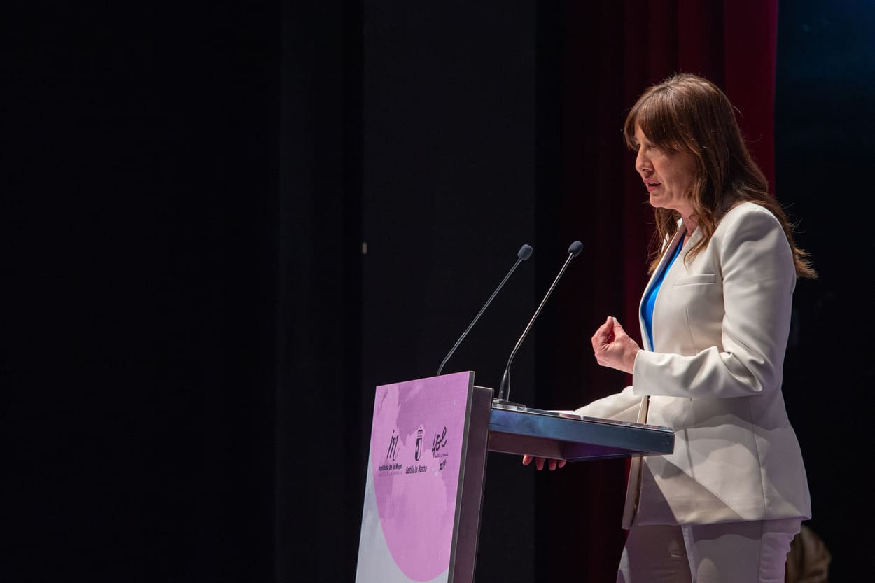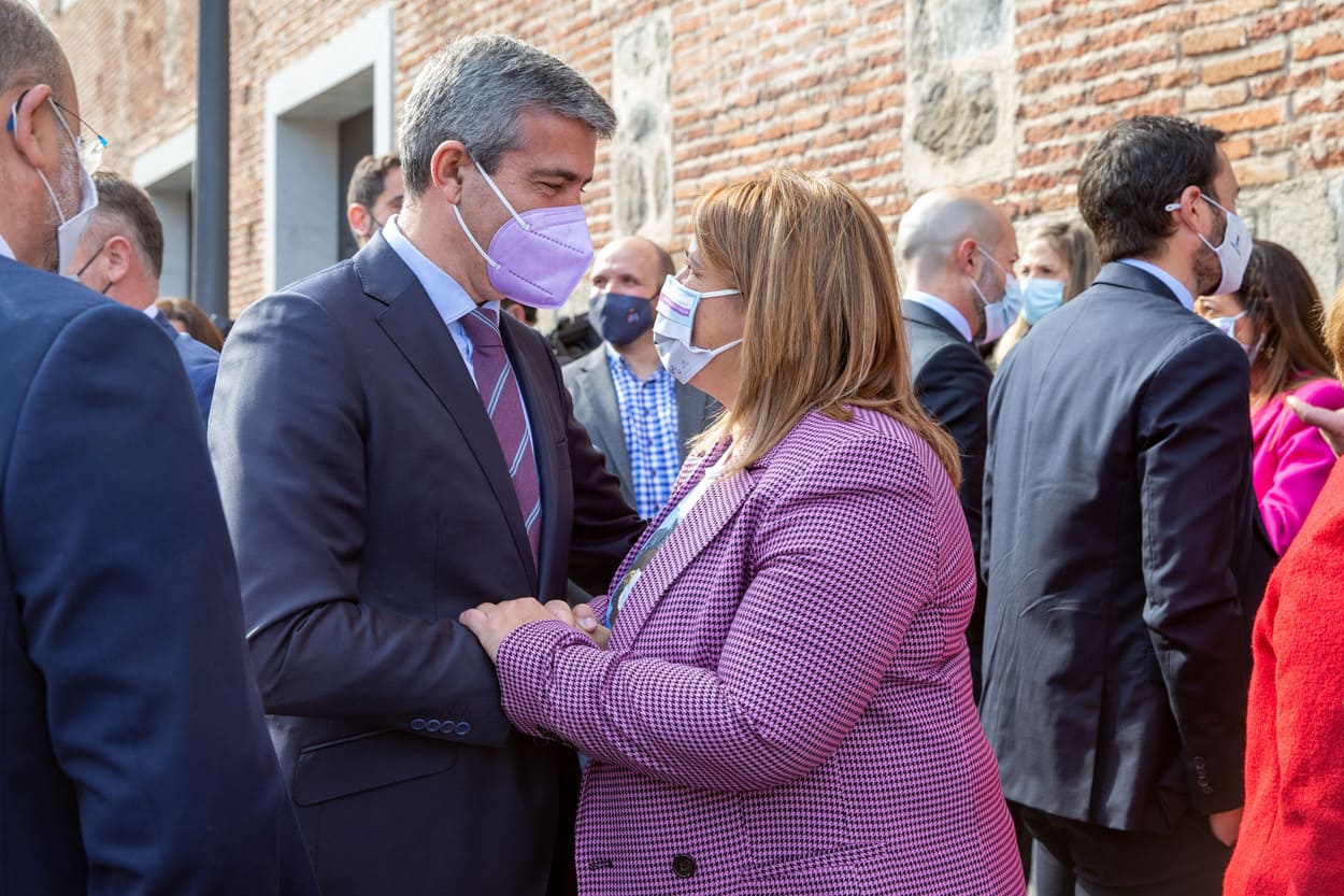 Calvo se ha mostrado muy agradecida tanto al presidente de Castilla-La Mancha, Emiliano García-Page, como a las instituciones de la región por «vestirse de gala» este lunes para celebrar de forma solemne el 8M, algo que a su entender, es «una clara vara de medir de cómo está evolucionado la democracia y el país».