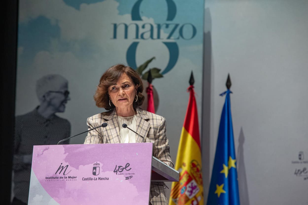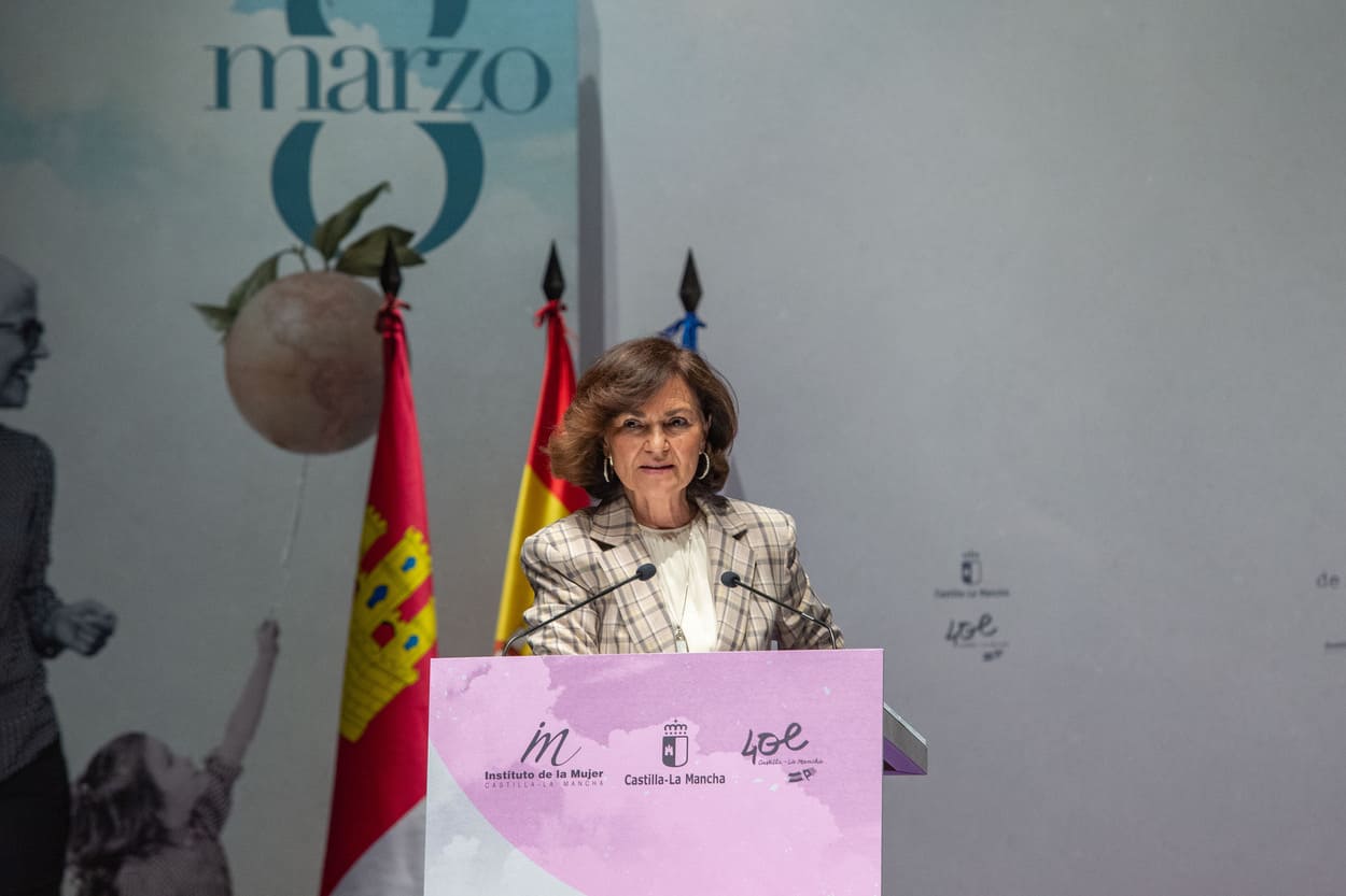 La expresidenta del Gobierno, Carmen Calvo, ha dedicado su Premio de Igualdad ‘Luisa Medrano’, con el que el Gobierno de Castilla-La Mancha reconoce su trayectoria como «referente feminista», a las mujeres de Ucrania «que han decidido resistir y no doblarse ante el tirano, al que se enfrentan por su pueblo».