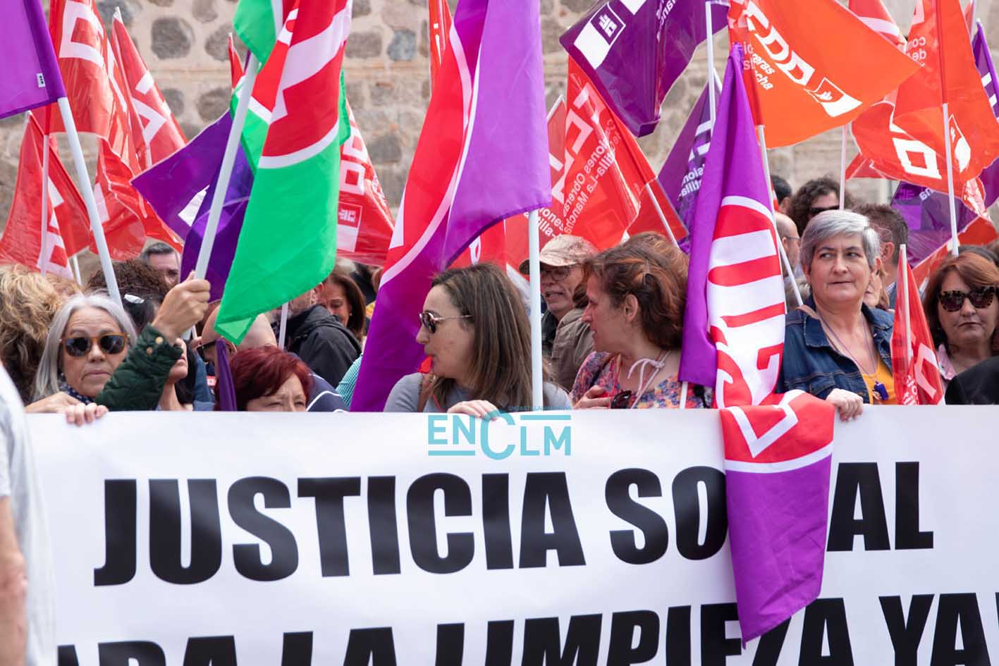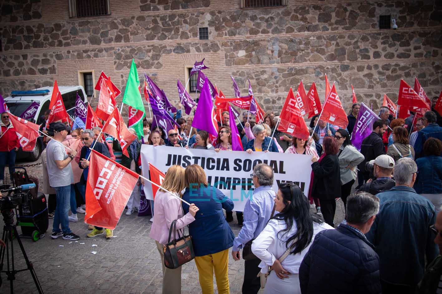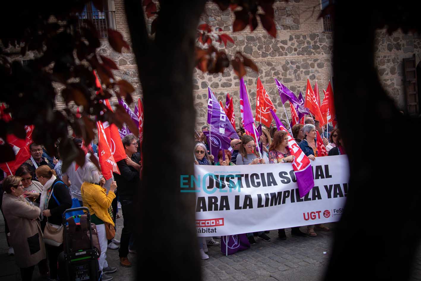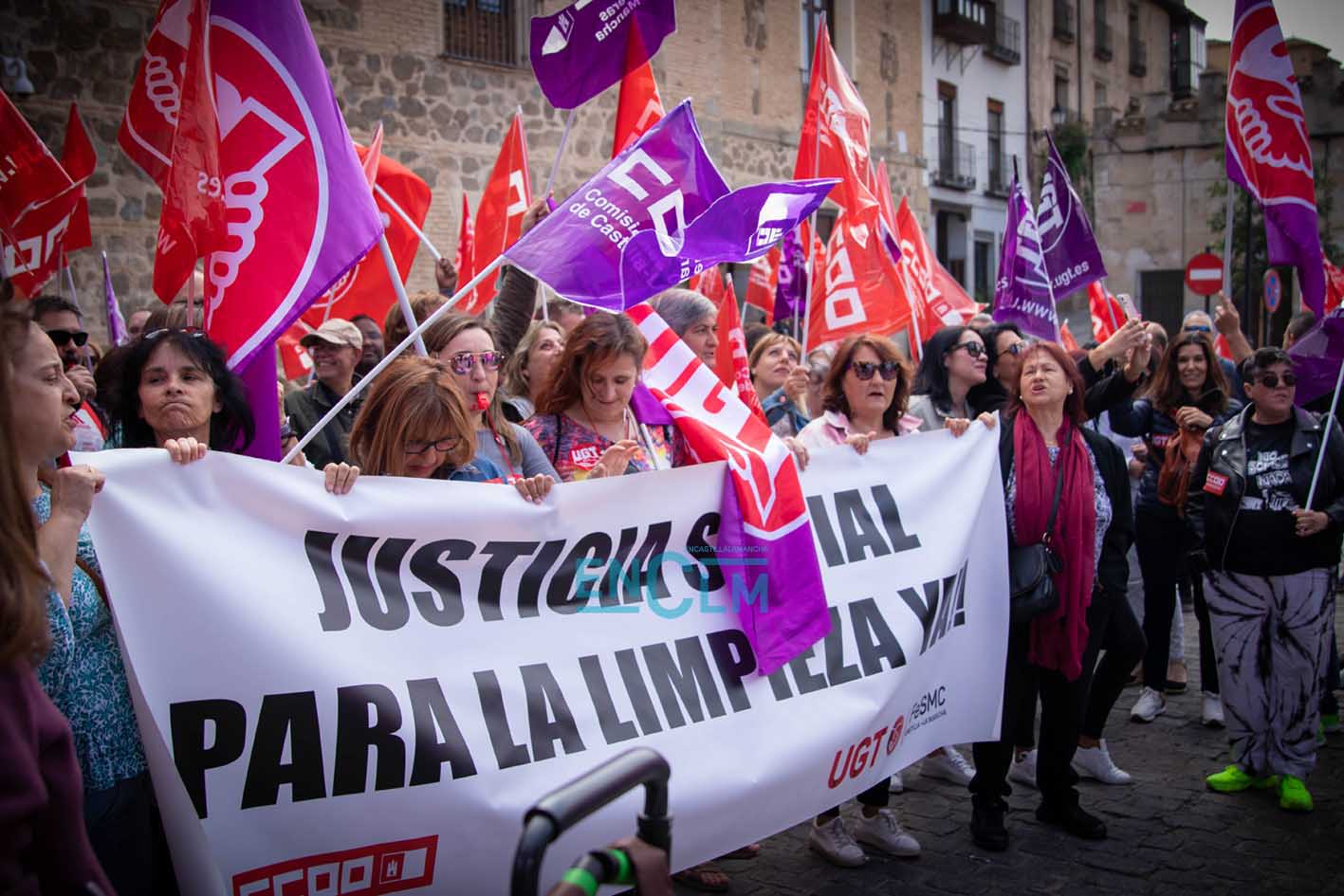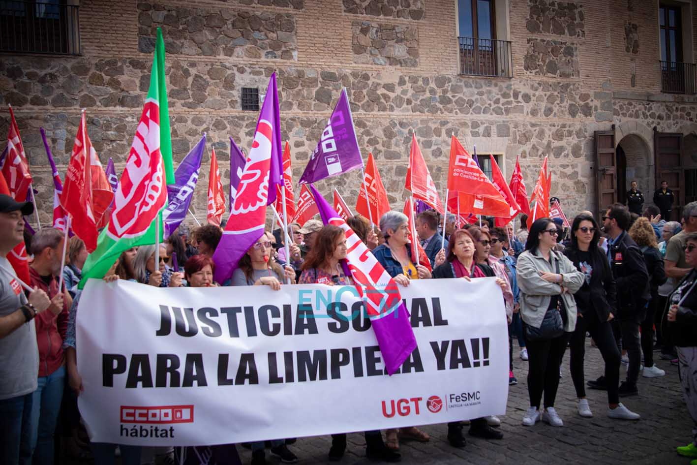 Vídeo y fotos | El sector de la Limpieza exige «justicia social» en una manifestación ‘caliente’ en Toledo