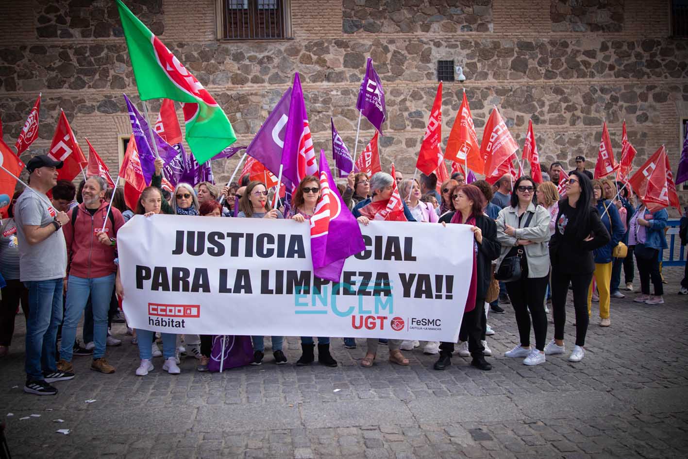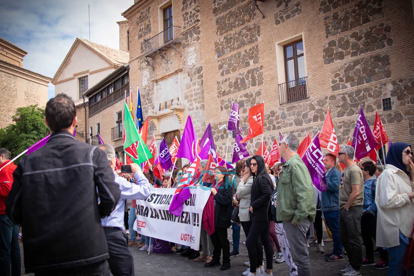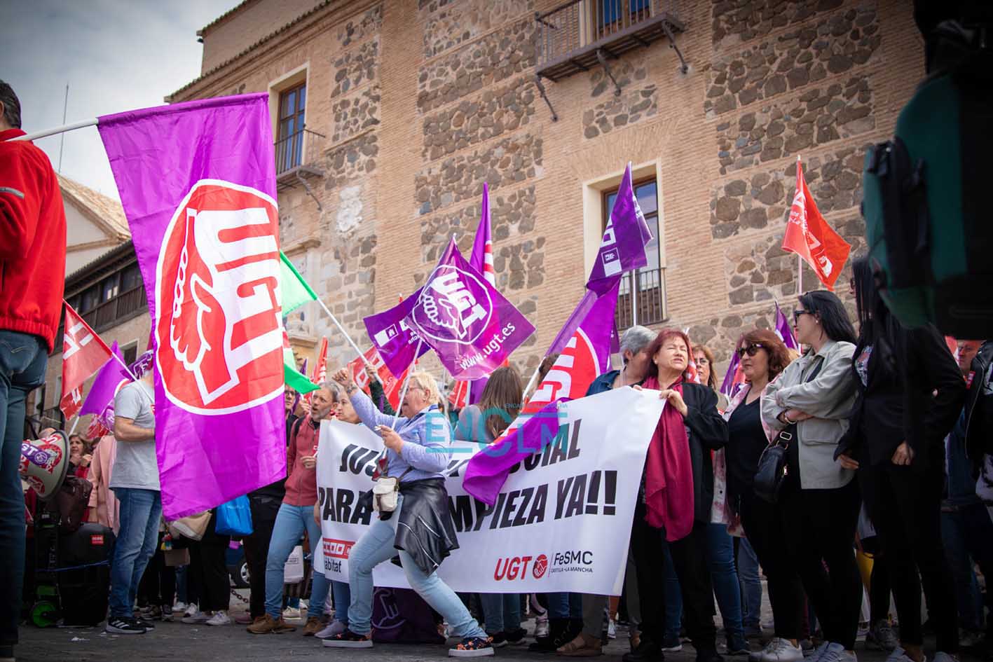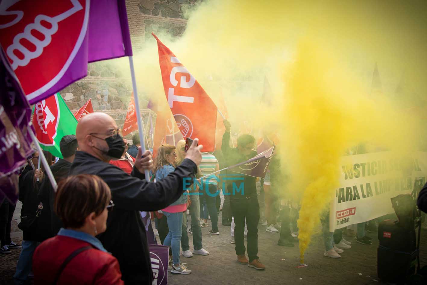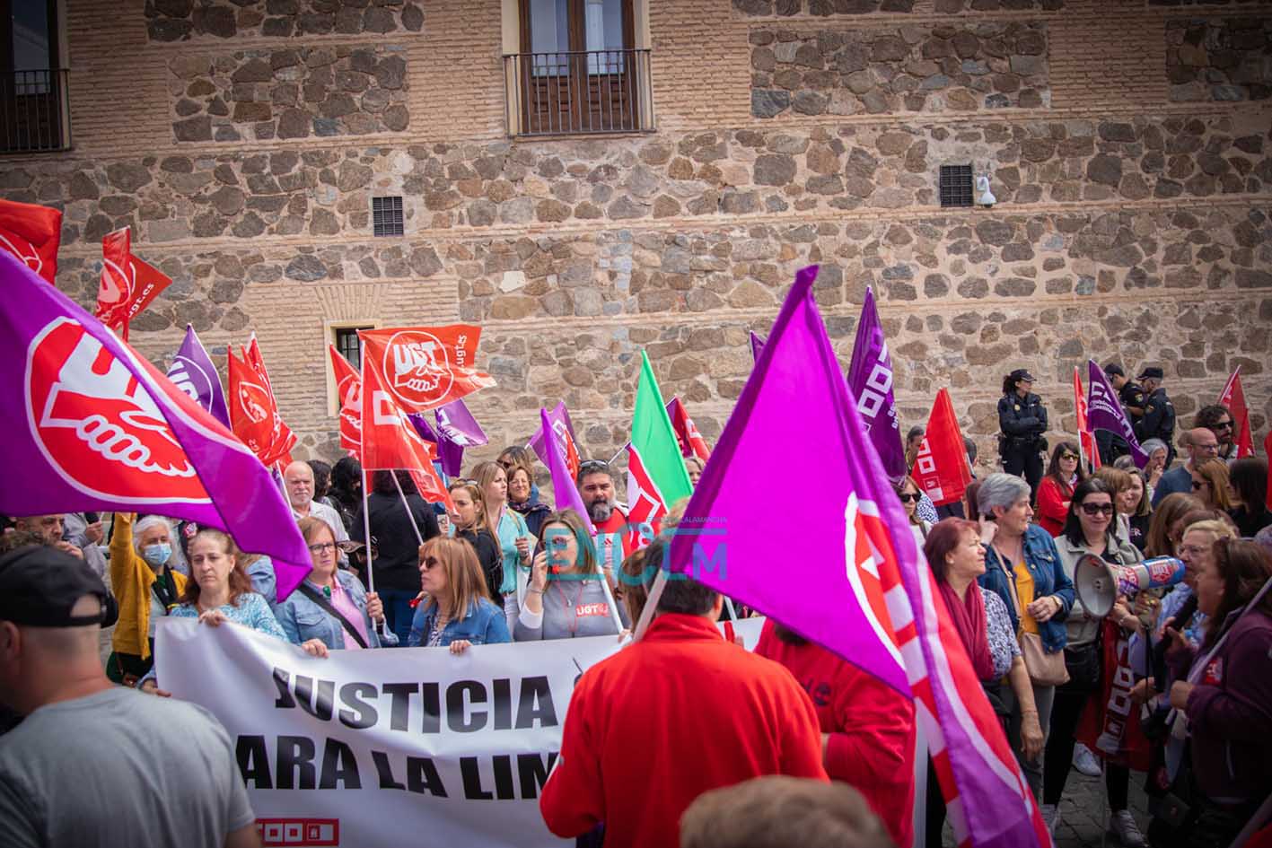Portada » Castilla-La Mancha » Toledo » Vídeo y fotos | El sector de la Limpieza exige «justicia social» en una manifestación ‘caliente’ en Toledo