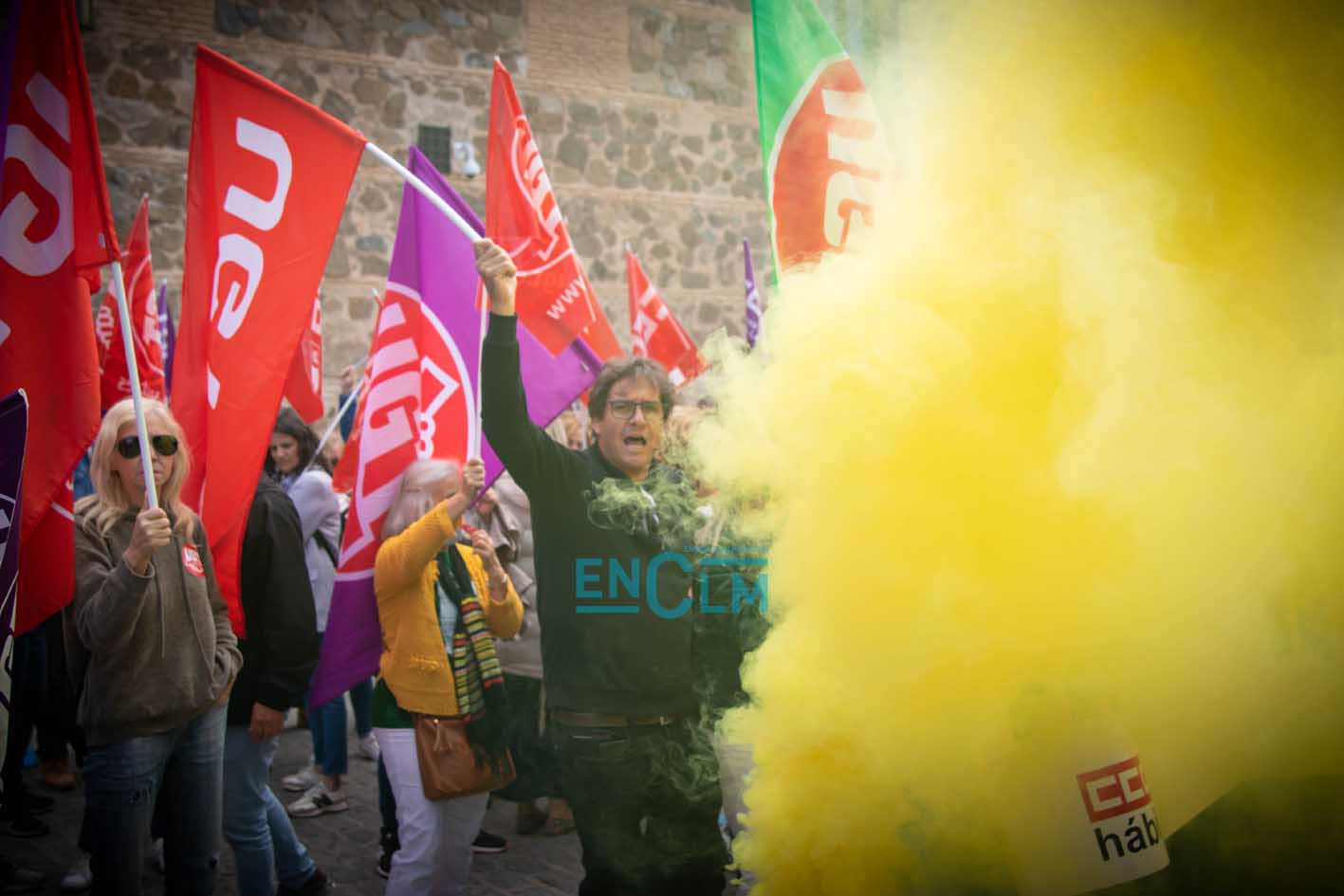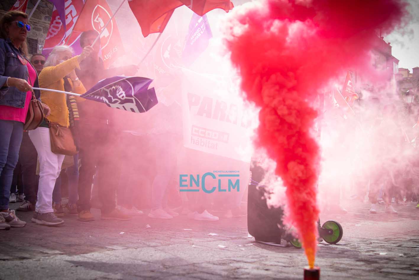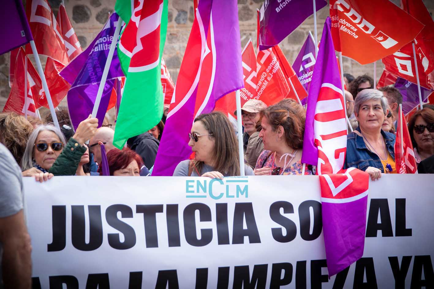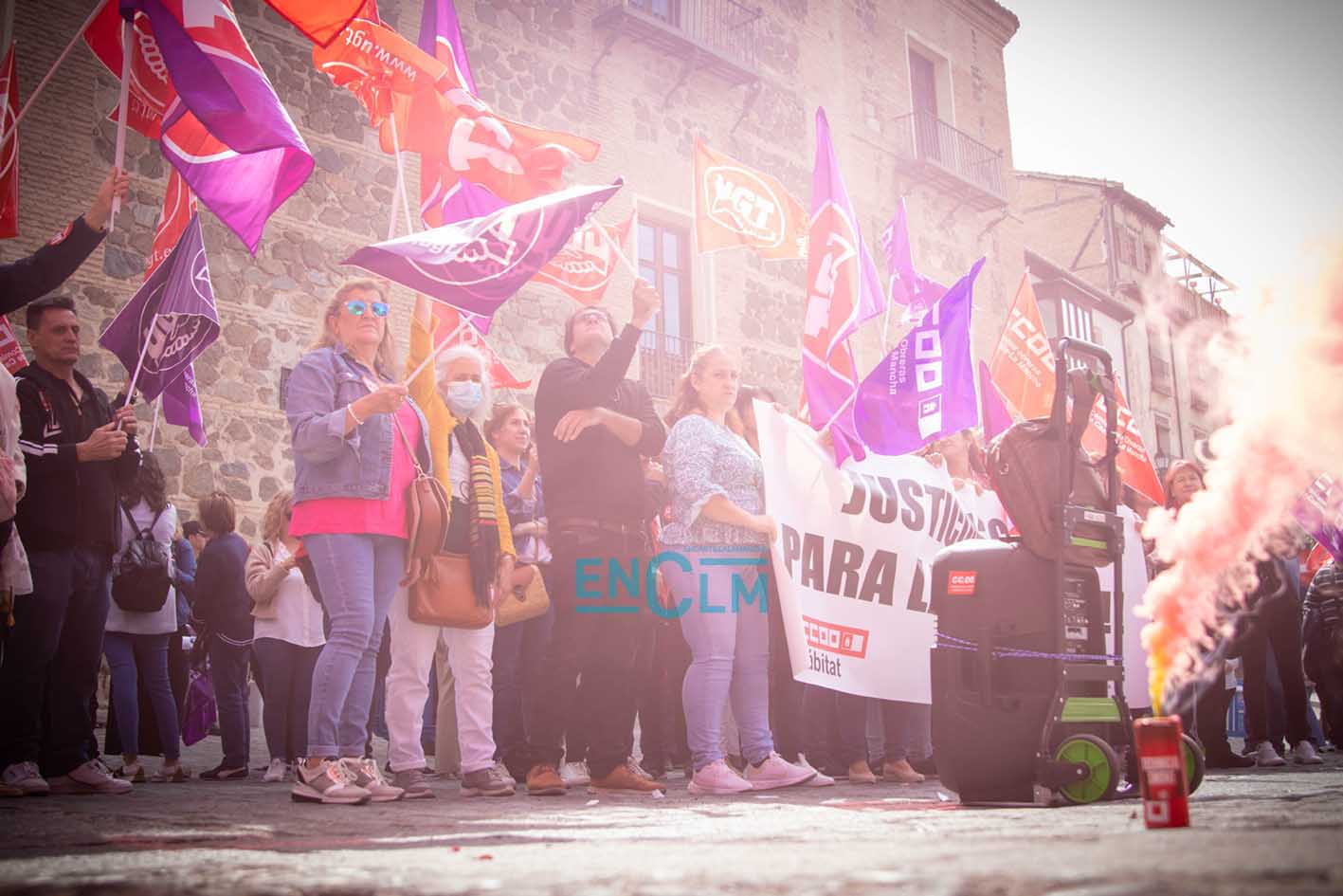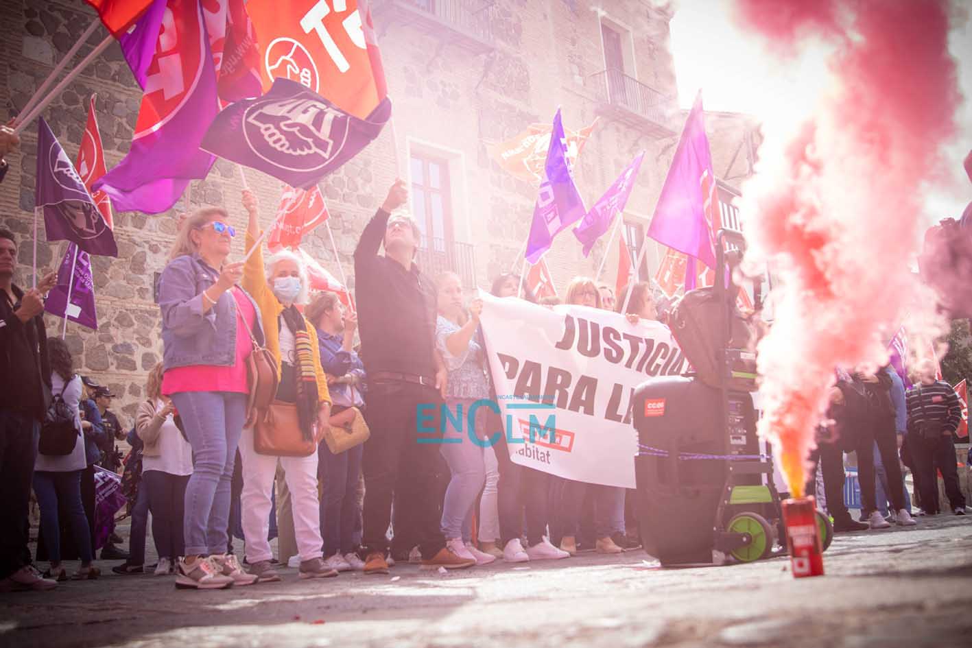 Portada » Castilla-La Mancha » Toledo » Vídeo y fotos | El sector de la Limpieza exige «justicia social» en una manifestación ‘caliente’ en Toledo