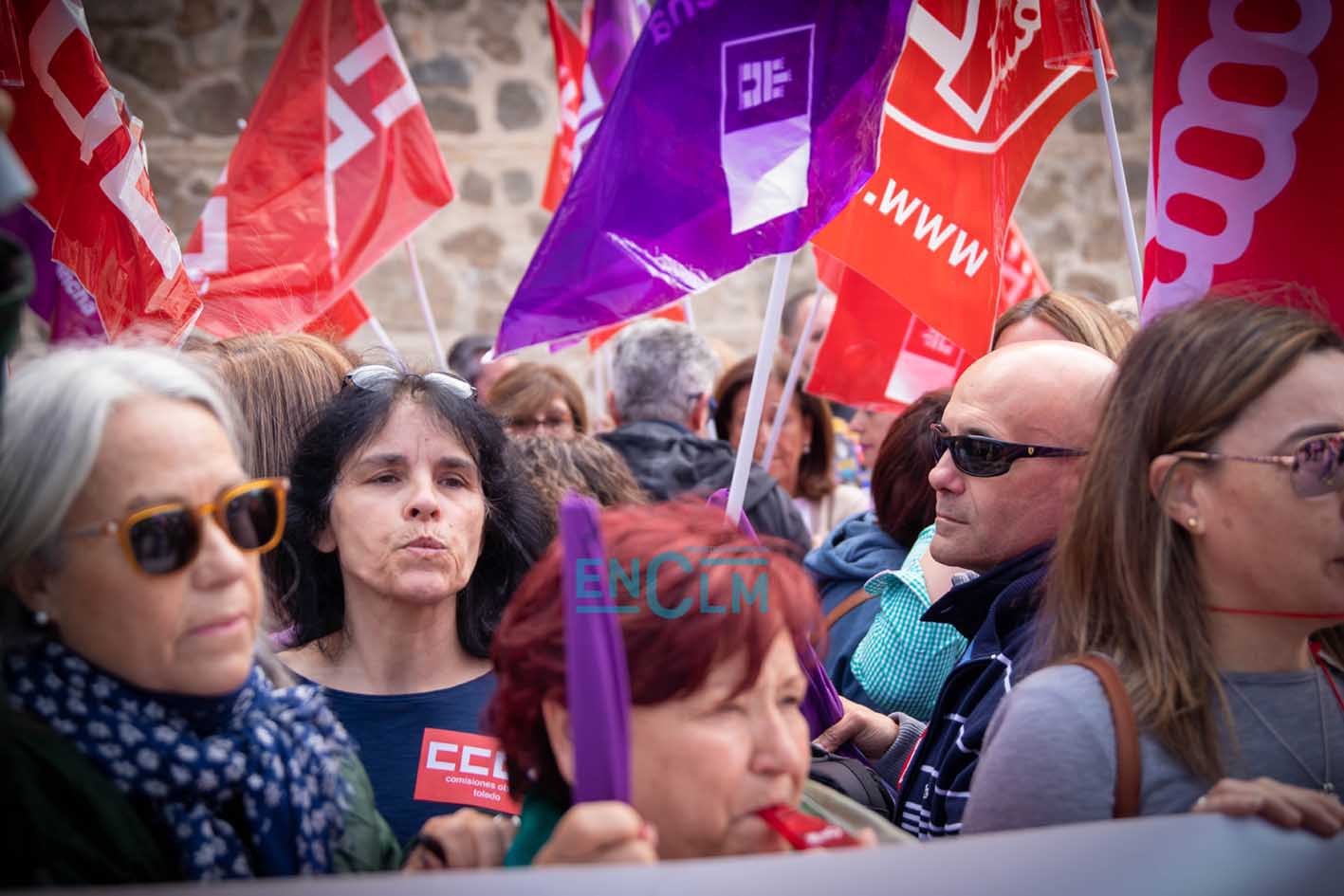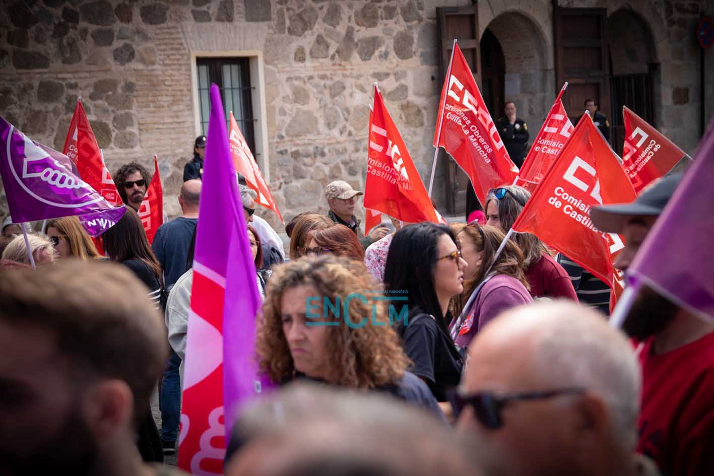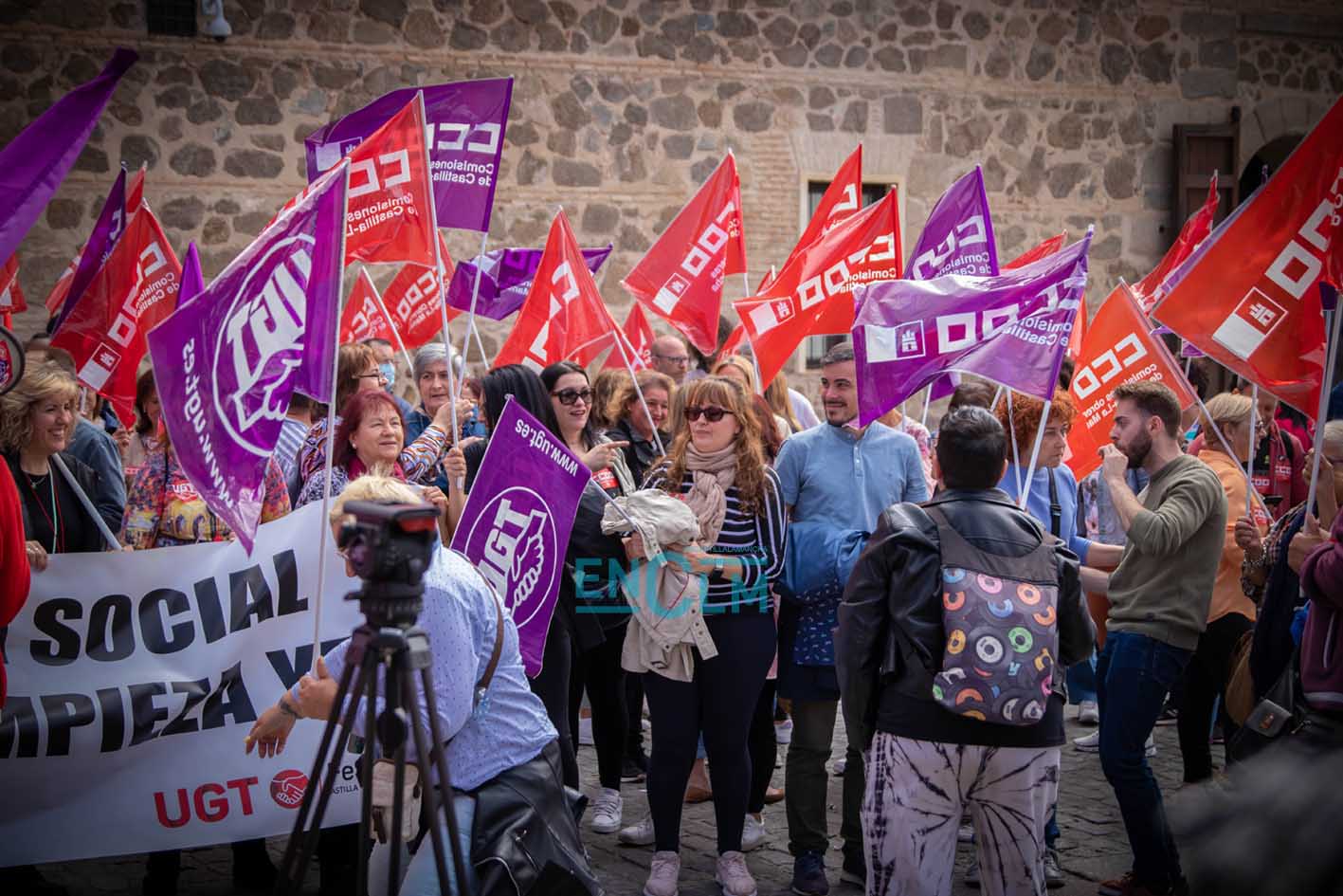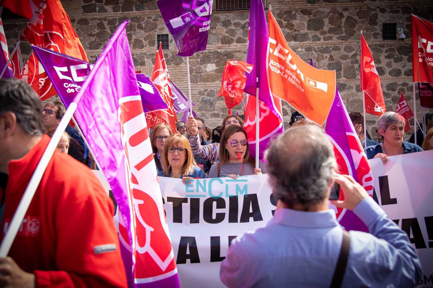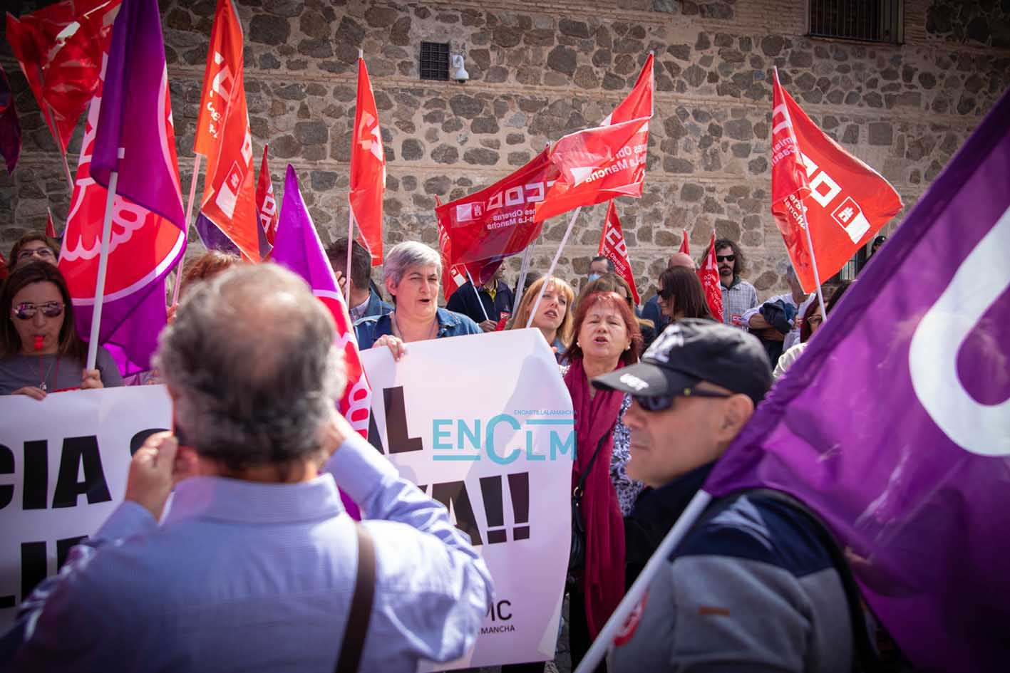 Portada » Castilla-La Mancha » Toledo » Vídeo y fotos | El sector de la Limpieza exige «justicia social» en una manifestación ‘caliente’ en Toledo