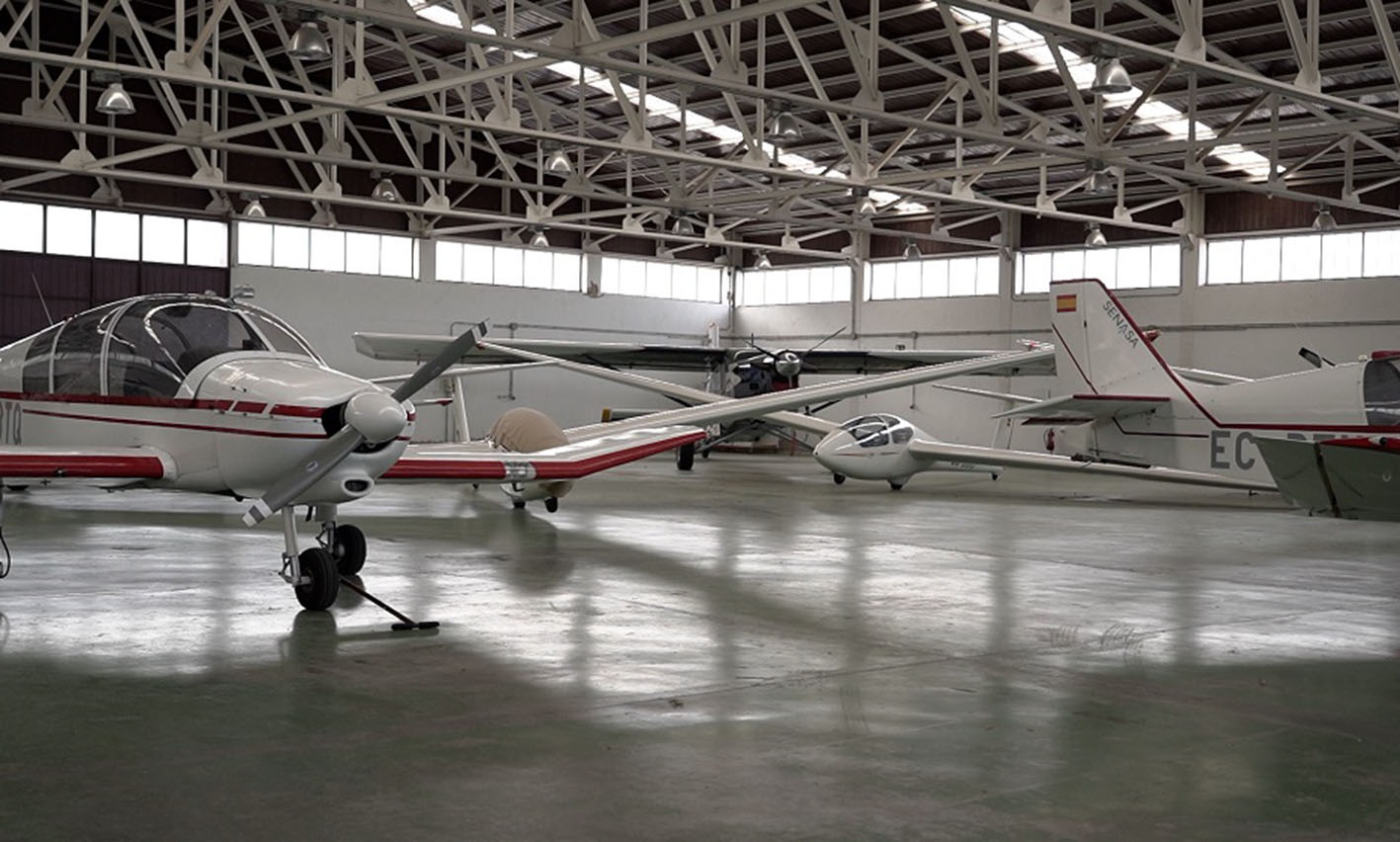 La infraestructura aeronáutica, a 60 km de Madrid, tiene dos hangares de 1.600 metros cuadrados, cada uno, con nave principal, oficina y aseos. Un hangar de 1.871 metros cuadrados de dos plantas: planta baja para mantenimiento de aeronaves, talleres, almacenes y vestuario, y una superior con aulas de formación y oficinas.