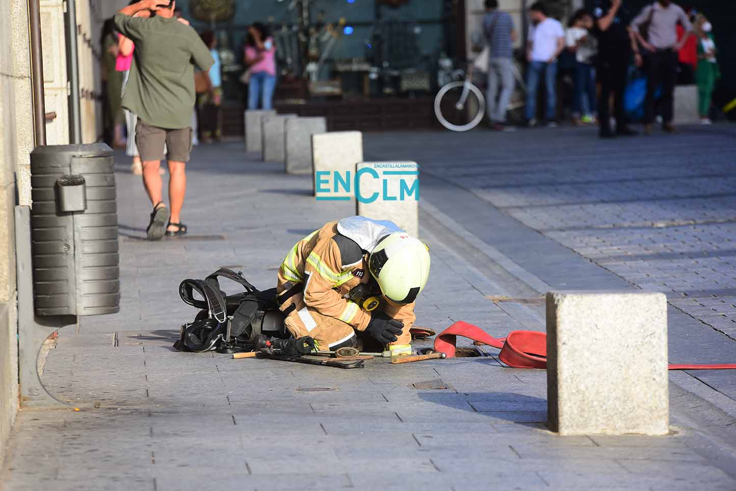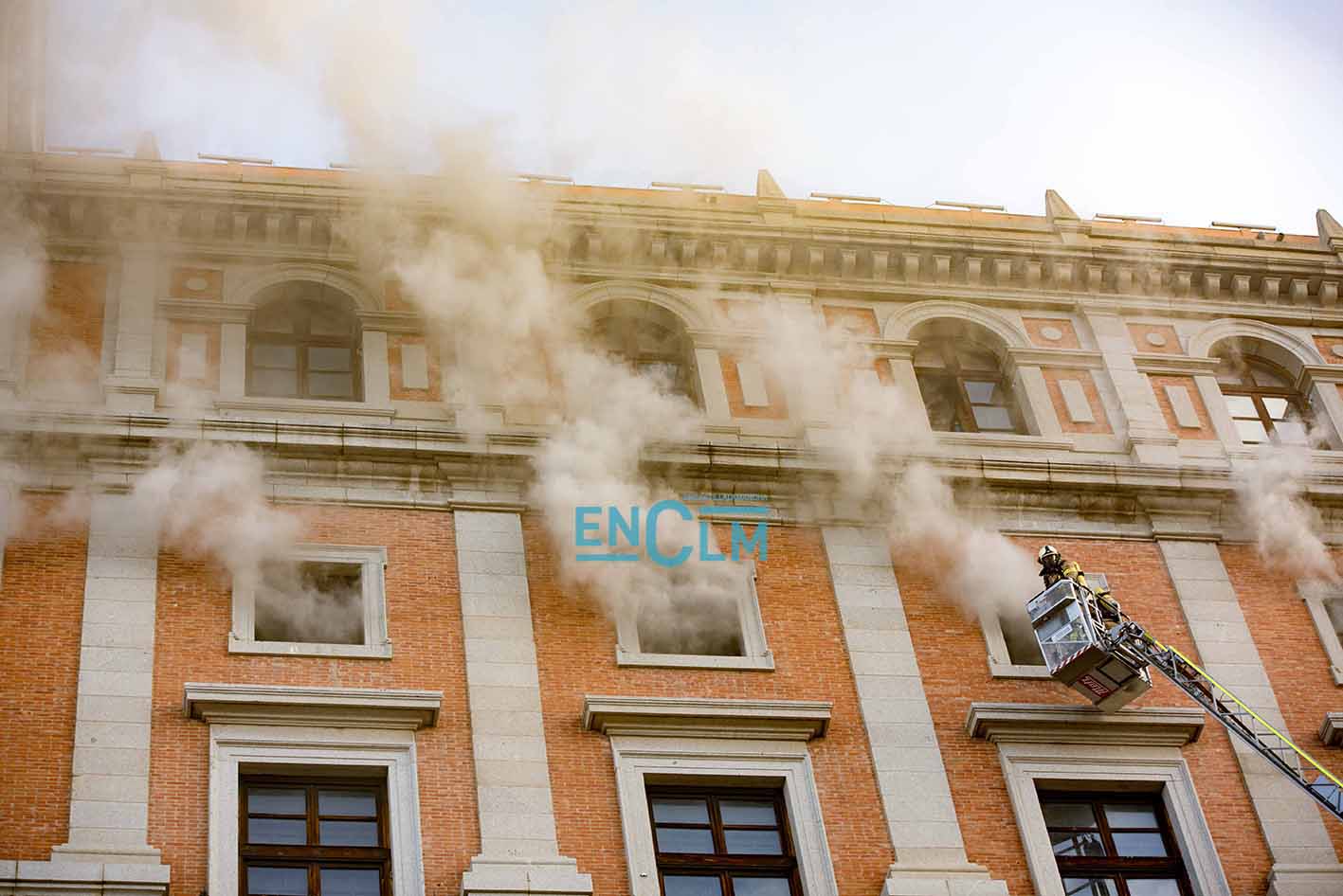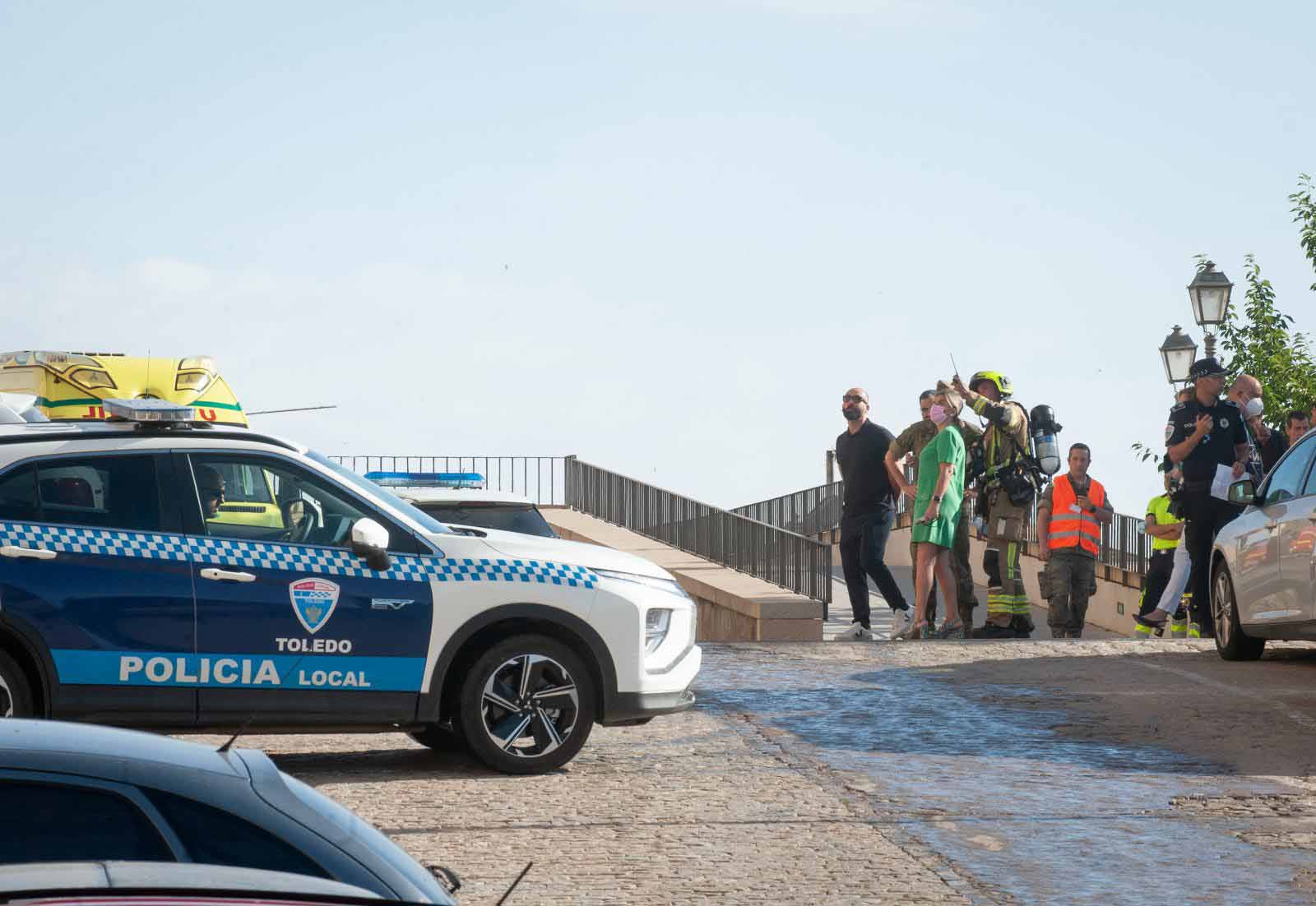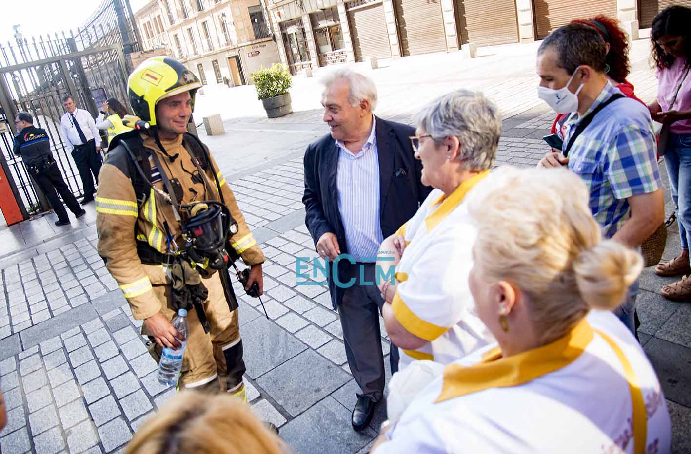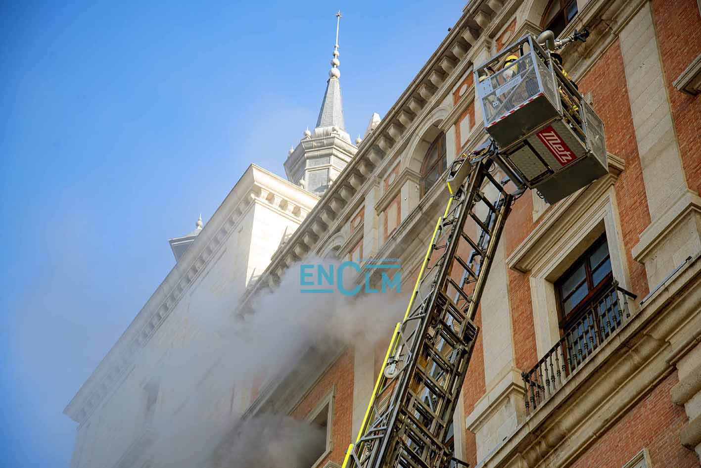 - Bomberos de Toledo, en la fachada del Alcázar de la capital regional. Foto: Rebeca Arango.