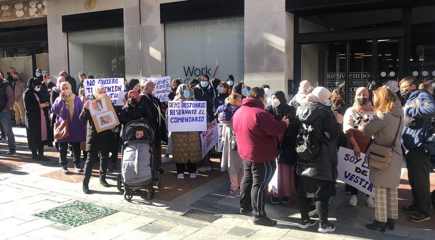 - Guadalajara: protestas contra un instituto que no deja llevar velo a una niña en clase. Foto: @dieGarces_ https://www.encastillalamancha.es/castilla-la-mancha-cat/guadalajara/guadalajara-protestas-contra-un-instituto-que-no-deja-llevar-velo-a-una-nina-en-clase/