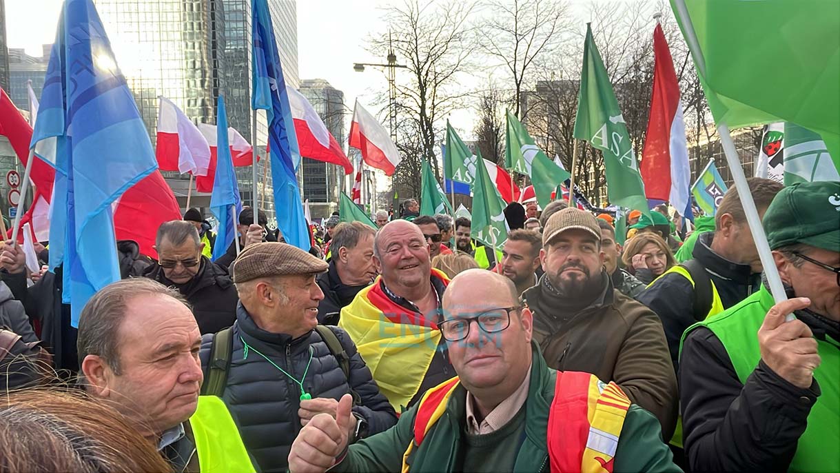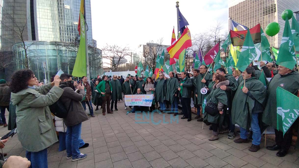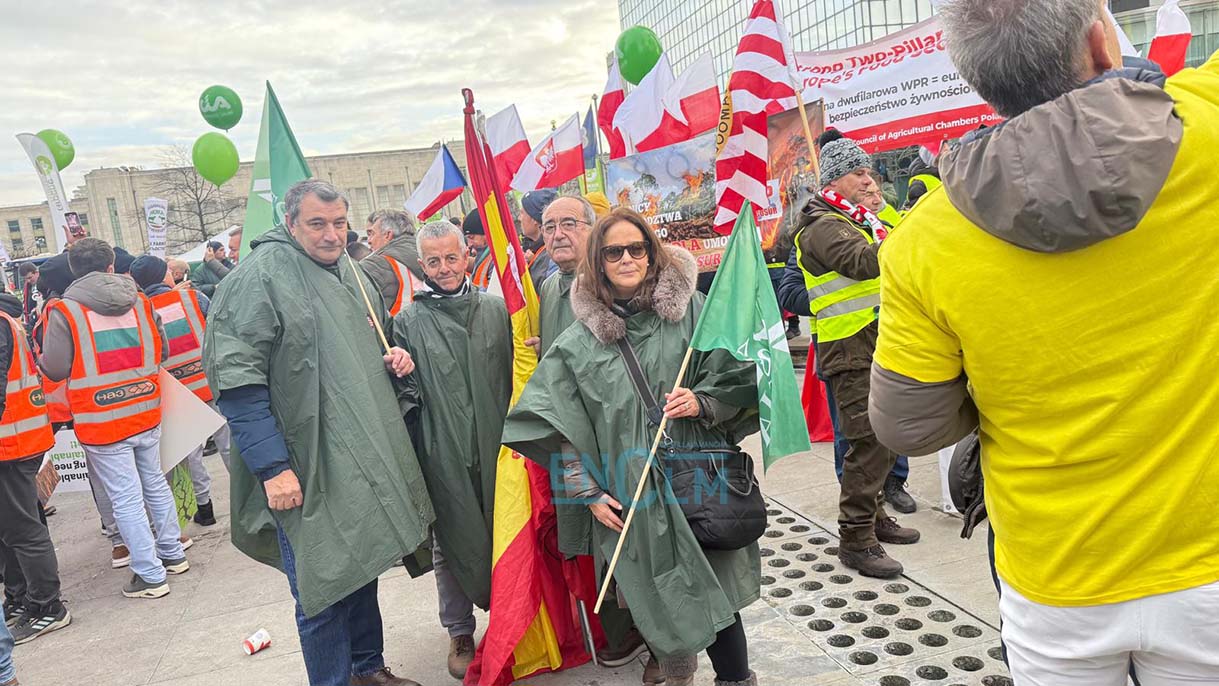 Miles de agricultores y ganaderos de toda España, cientos de ellos provenientes de las cinco provincias de Castilla-La Mancha, se han manifestado este jueves en Bruselas, convocados por las organizaciones agrarias, en una movilización que han calificado de “histórica”