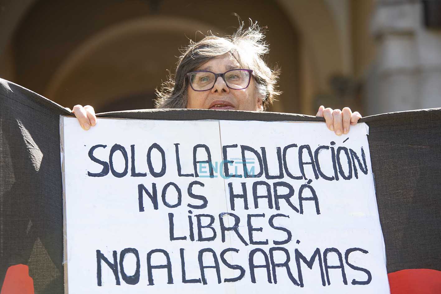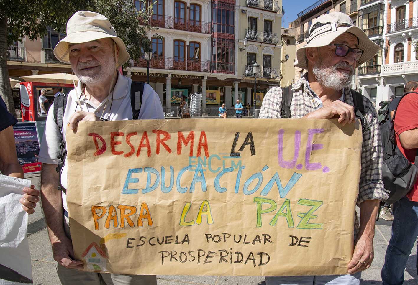 Con motivo del encuentro de ministros de Defensa de la Unión Europea en la capital regional varias asociaciones se han concentrado en el casco histórico de la capital regional para mostrar su indignación ante, entre otras razones, la "política armamentística" de la UE, como han explicado. Fotografías: Rebeca Arango