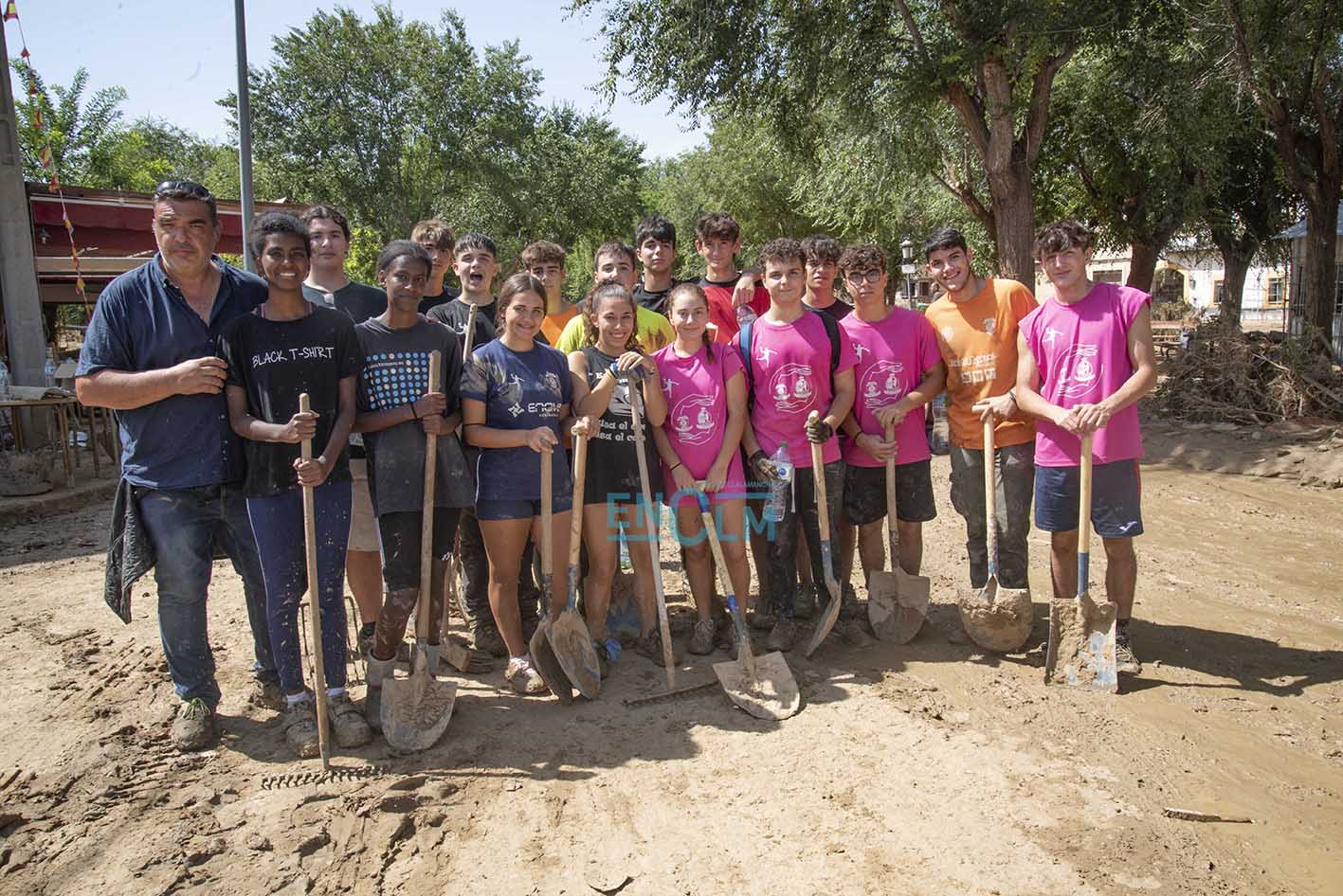 - Jóvenes voluntarios de Olías, junto al alcalde de Yunclillos.
