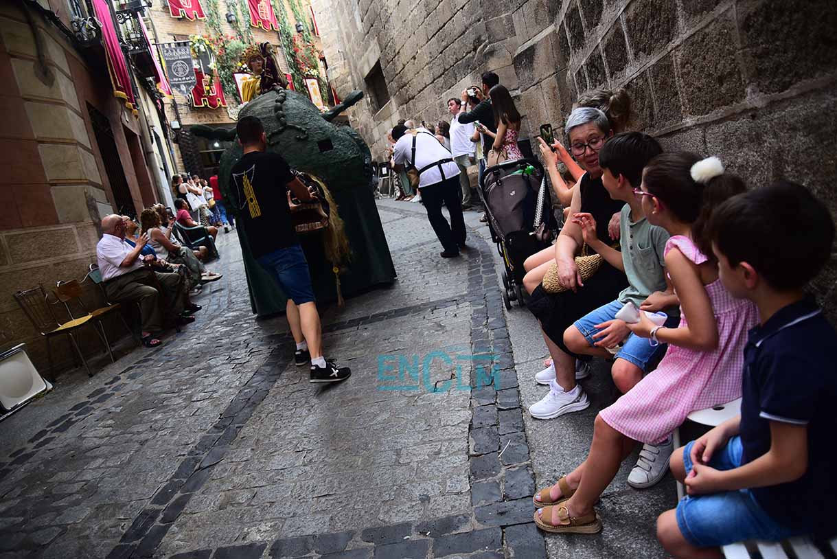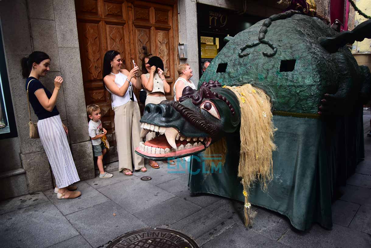 Portada » Fotogalería » Fotos | La Tarasca, acompañada de Gigantes y Cabezudos, divirtió y refrescó en la calurosa tarde de Toledo