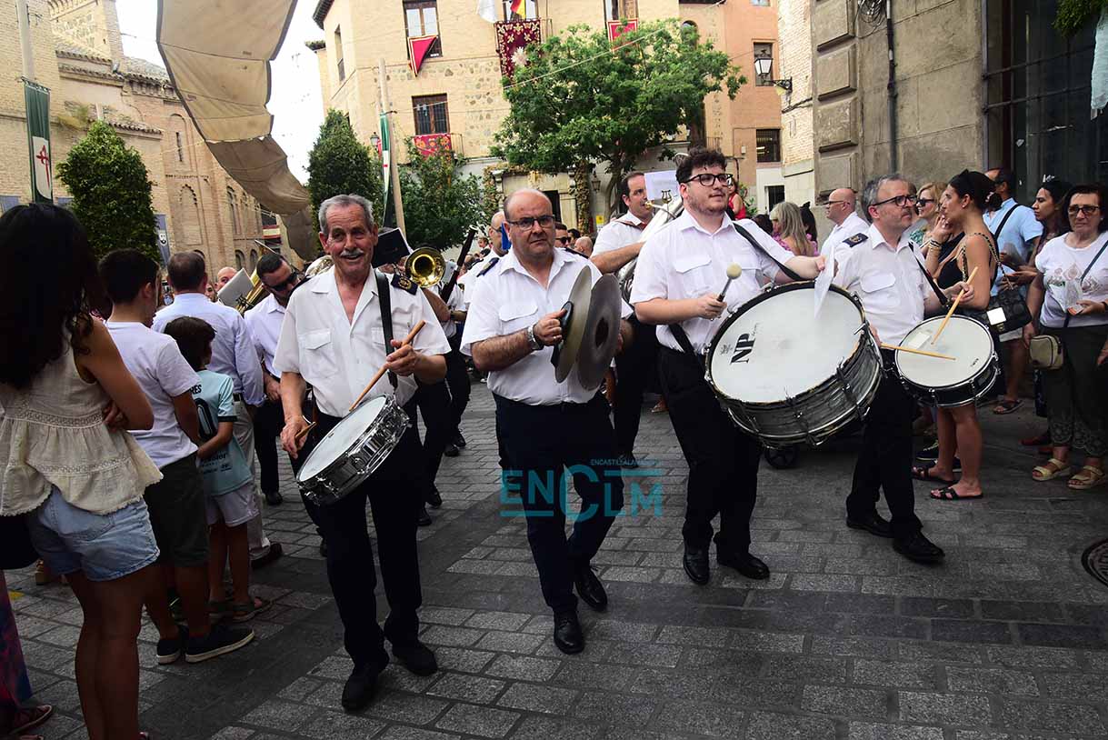 Las bandas de música amenizaron también el popular desfile que recorrió, como siempre, las calles por las que mañana procesionará la Custodia de Arfe. Fotografías: Rebeca Arango.