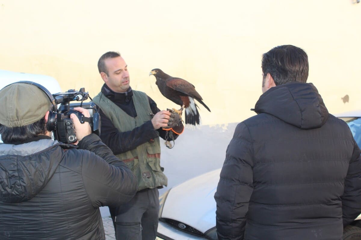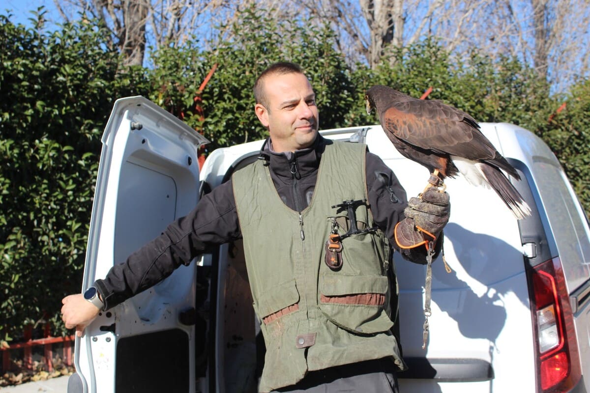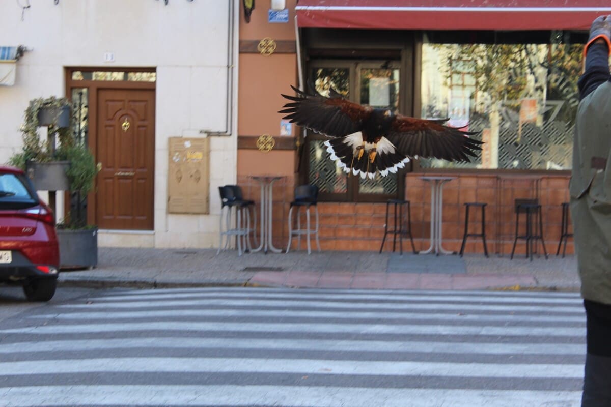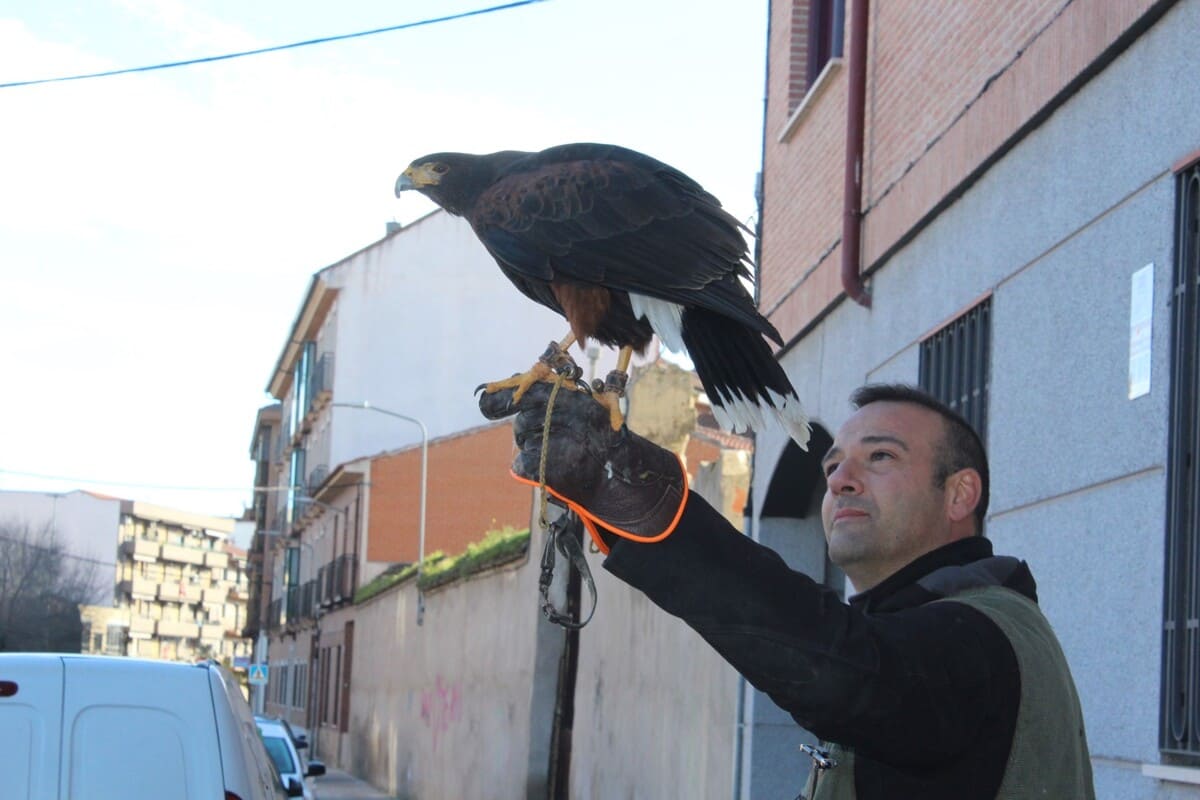 Un águila de Harris sobrevoló diferentes zonas del pueblo toledano de Torrijos con el objetivo de ahuyentar a las palomas, contribuir a que estas no incuben sus huevos y a que, por lo tanto, no prosperen de dichos huevos nuevos ejemplares. Antes de comenzar con este tipo de intervenciones, la empresa Frasur Control diagnosticó la existencia de una cifra aproximada de 15.000 palomas en la localidad