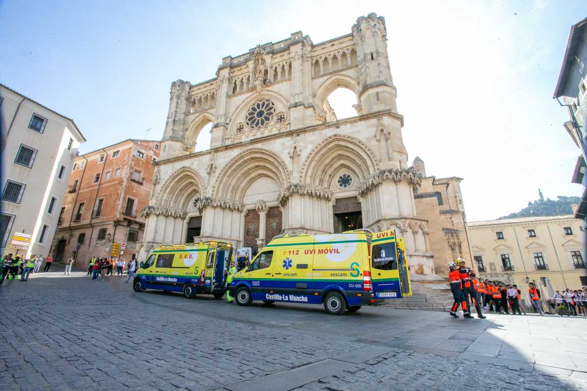 La Catedral de Cuenca realiza un simulacro de incendio para activar el Plan Territorial de Emergencias de Castilla-La Mancha (Platecam). Se han movilizado más de 200 personas entre Bomberos, Guardia Civil, Policía Nacional y Local, Protección Civil, Cruz Roja y el Servicio de Salud de Castilla-La Mancha. (Fotos: A. Pérez Herrera // JCCM)
