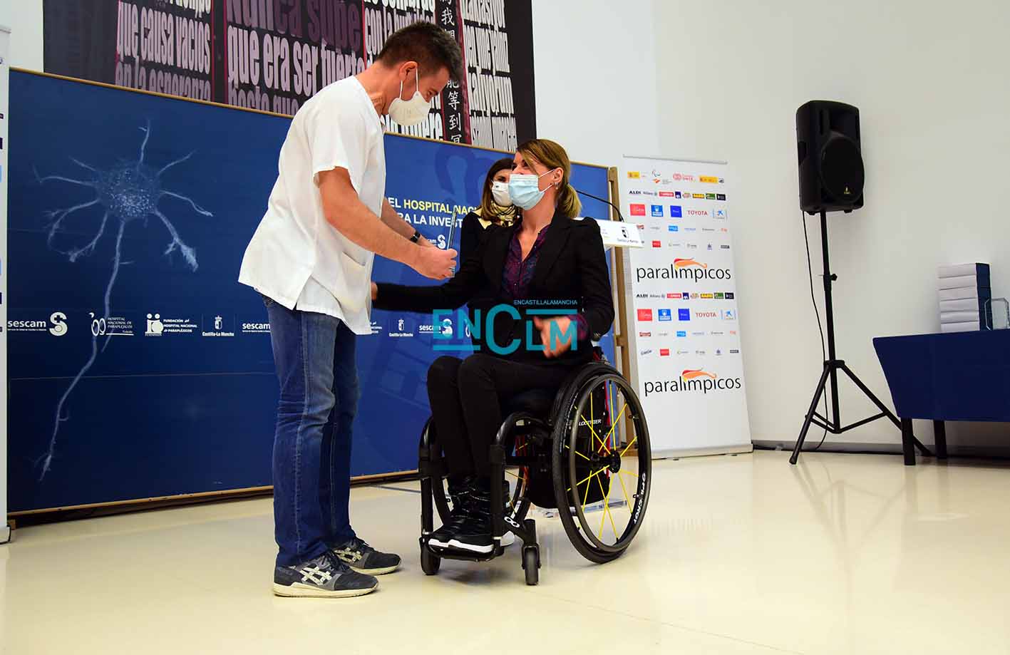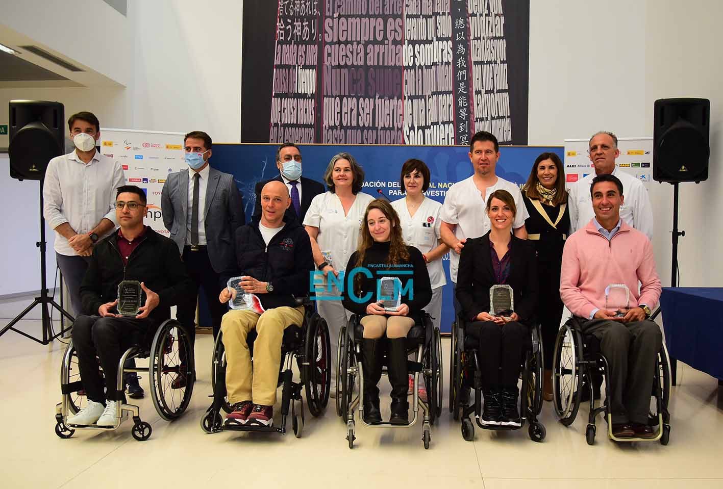 Han podido estar presentes cinco de los homenajeados: Luis Miguel García-Marquina, handbike, medalla de bronce en Tokio 2020; Eva María Moral Pedrero, triatlón, medalla de bronce en Tokio, 2020; Loida Zabala Ollero, halterofilia; Miguel Ángel Toledo Bachiller, tenis de mesa; y Francisco Javier López Sayago, de tenis de mesa.