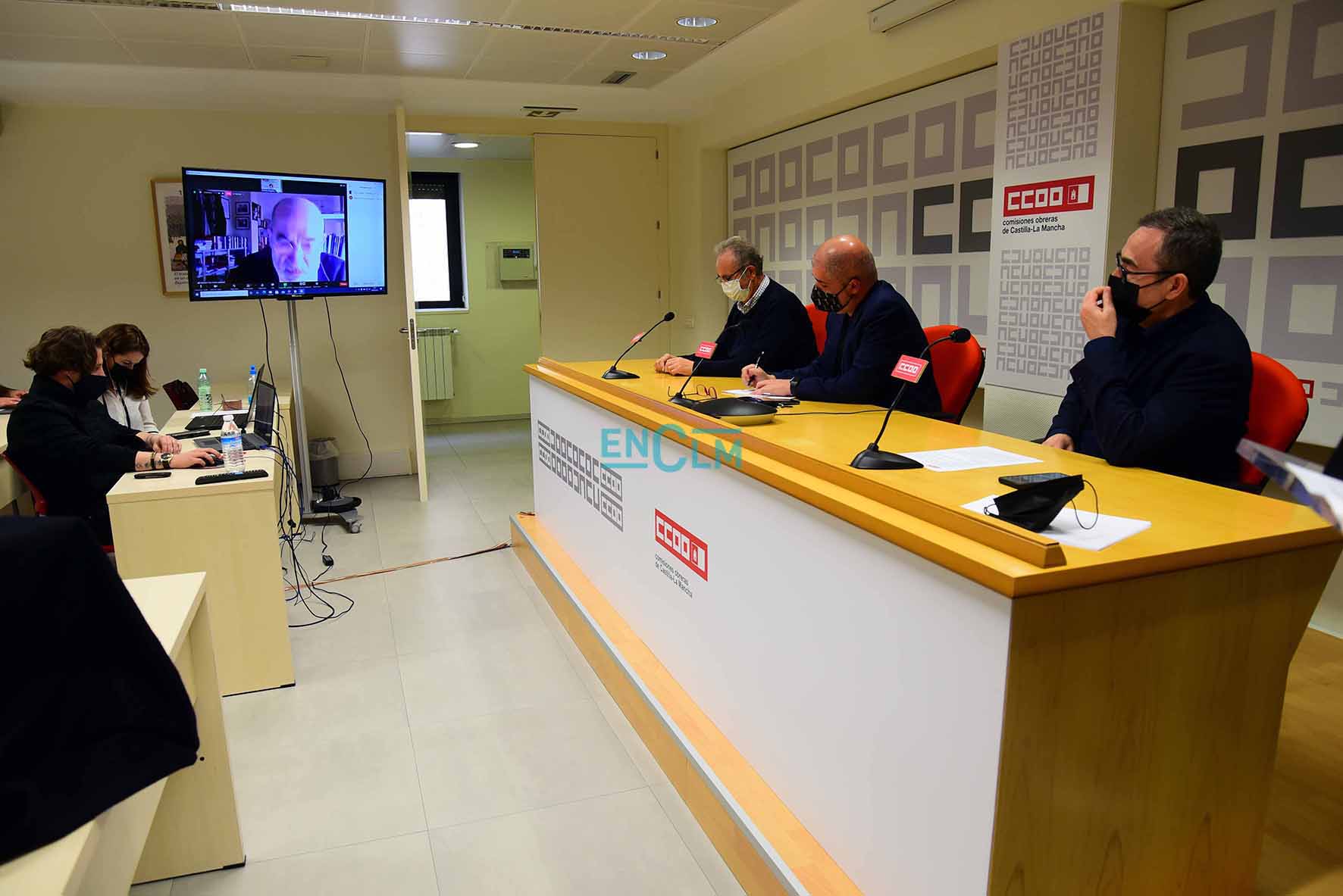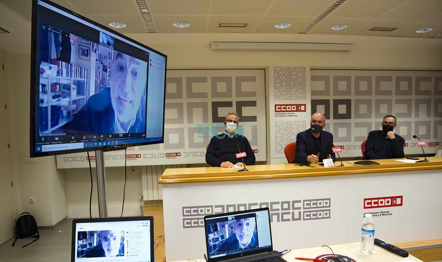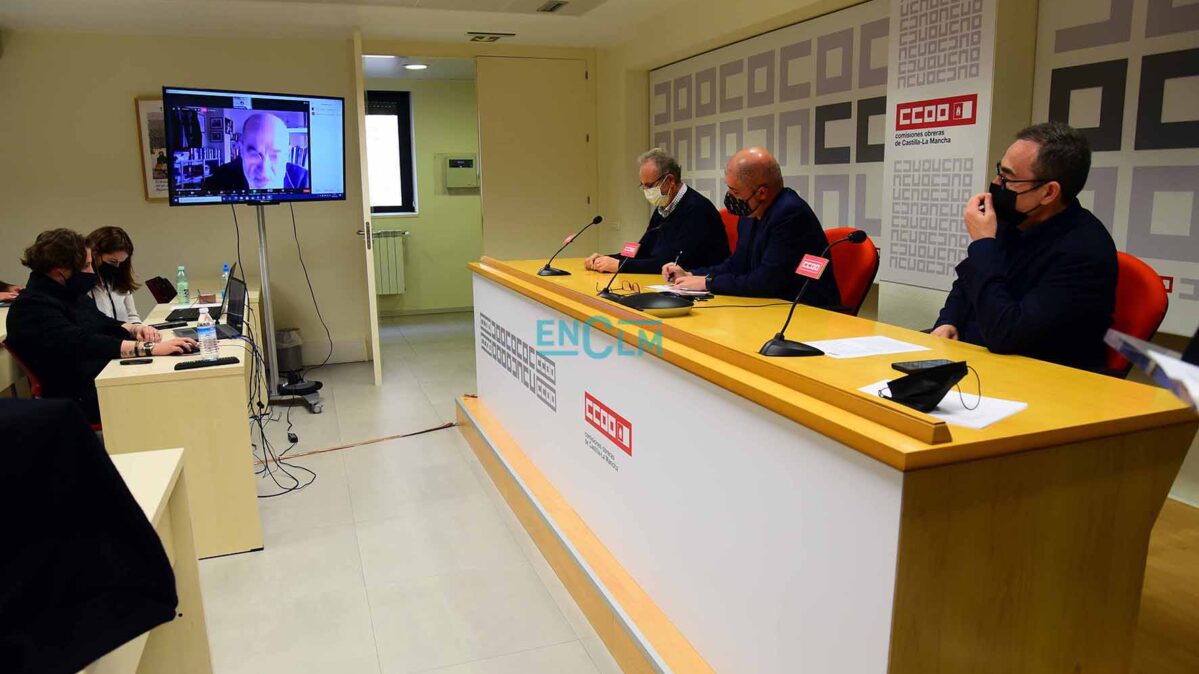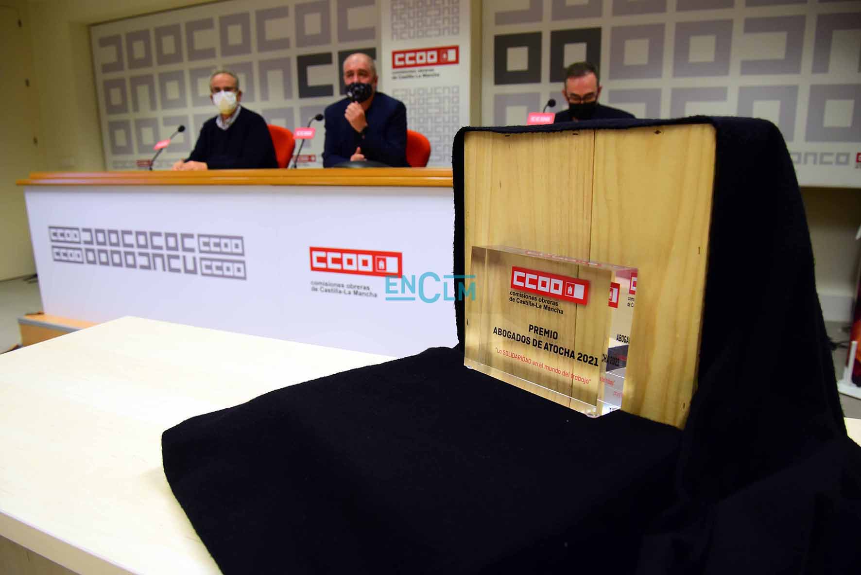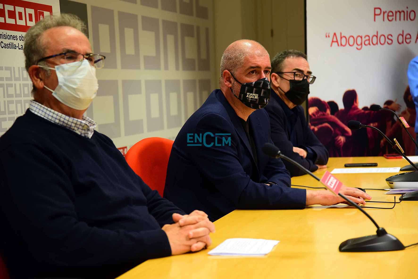 CCOO CLM y la Fundación Instituto de Estudios Sociales han entregado el reconocimiento a la solidaridad del mundo del trabajo durante la pandemia, en un acto en el que ha participado el secretario general, Unai Sordo, el secretario regional, Paco de la Rosa, y el presidente de la Fundación Abogados de Atocha, Alejandro Ruiz-Huerta. Fotografías: Rebeca Arango