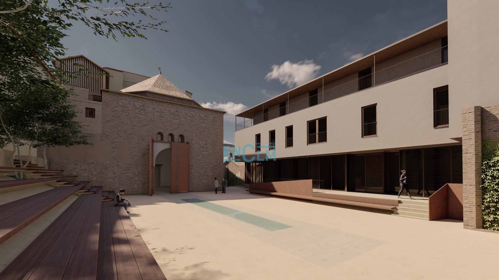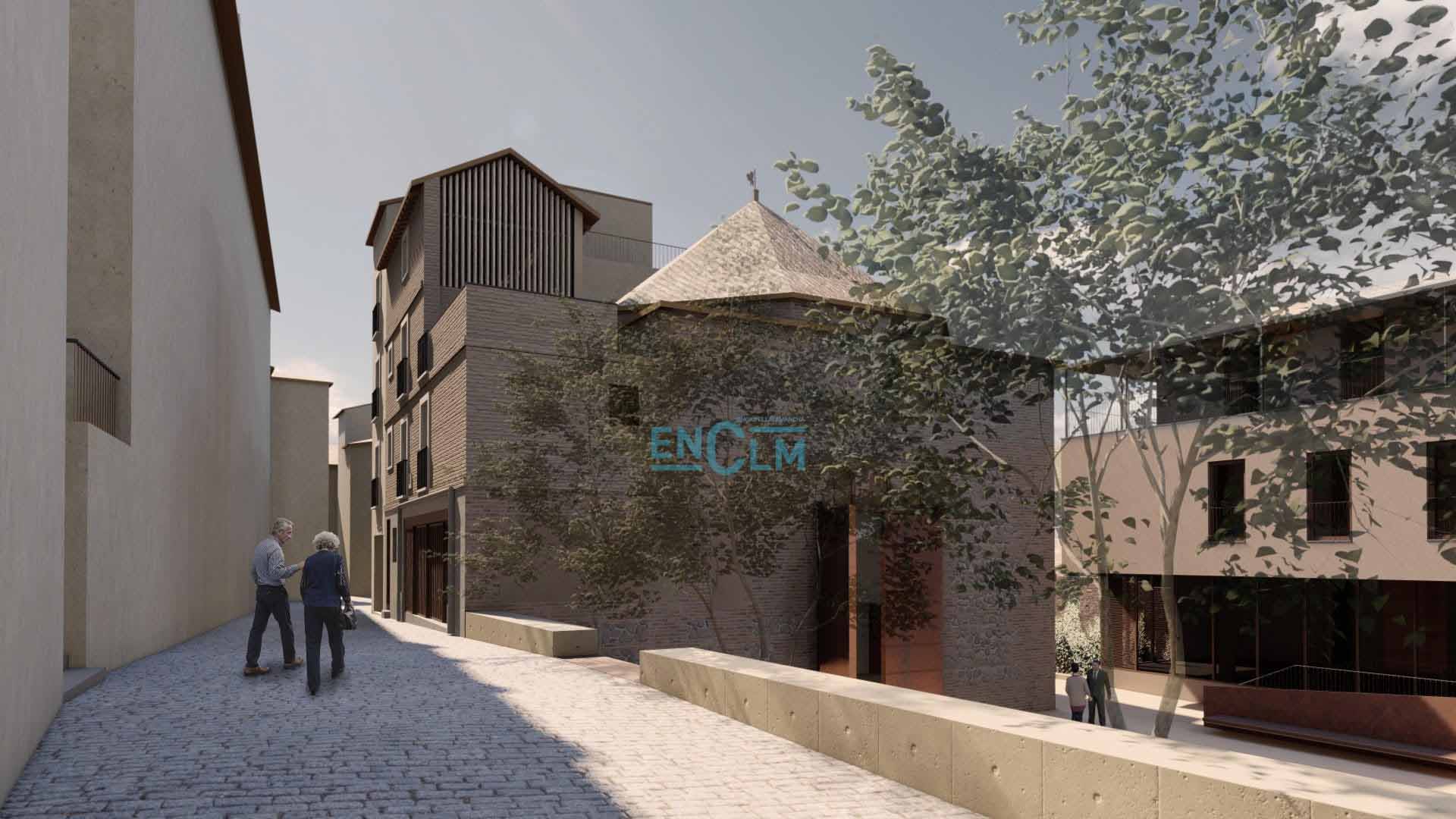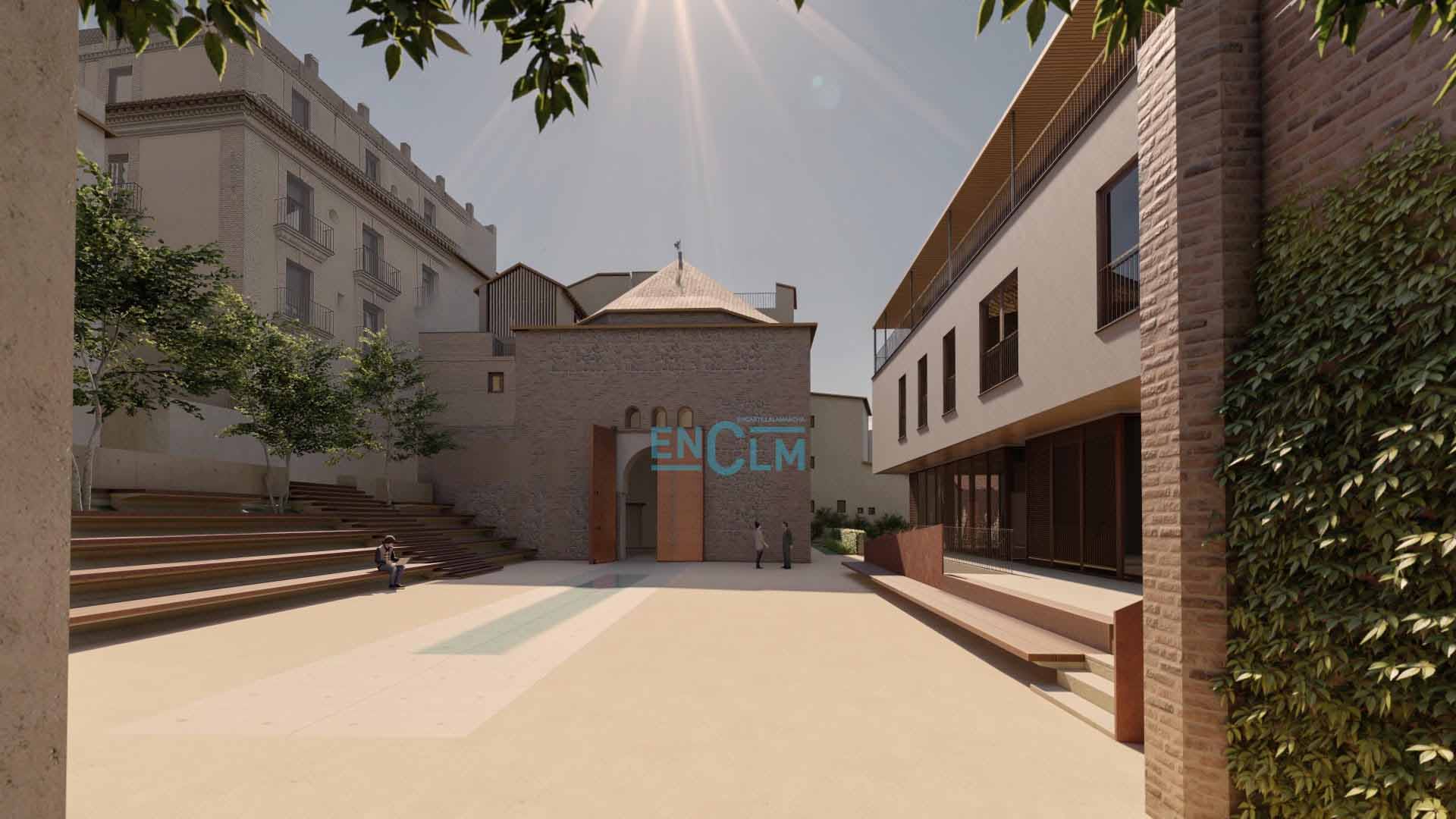 - Recreación de cómo quedarán la fachada del Salón Rico y la plaza, que será un espacio cultural para disfrute y uso de los vecinos. Infografía: Consorcio de Toledo.