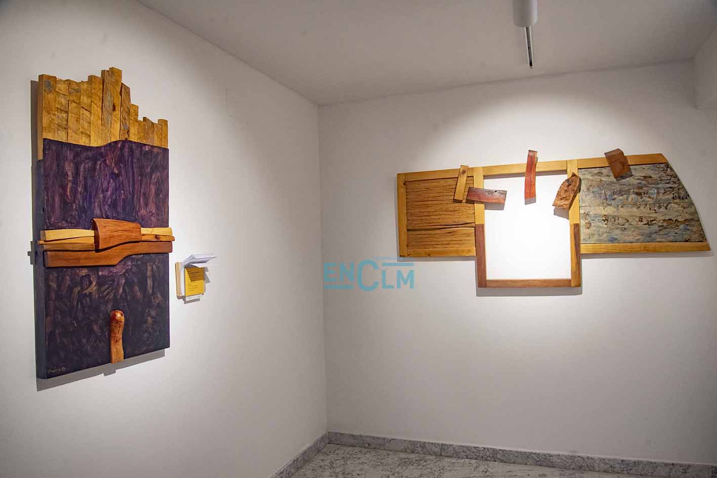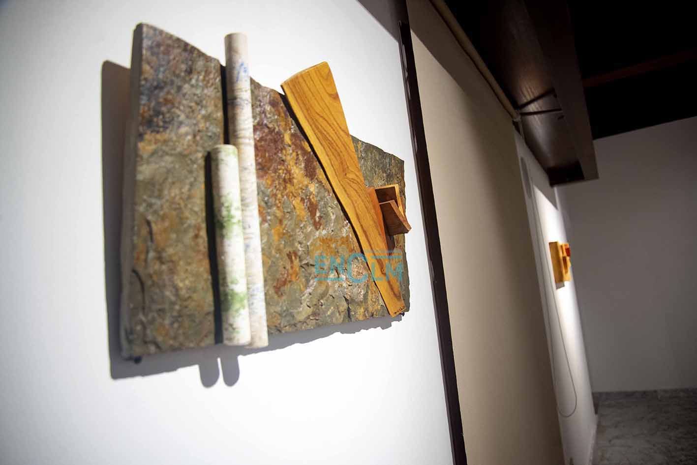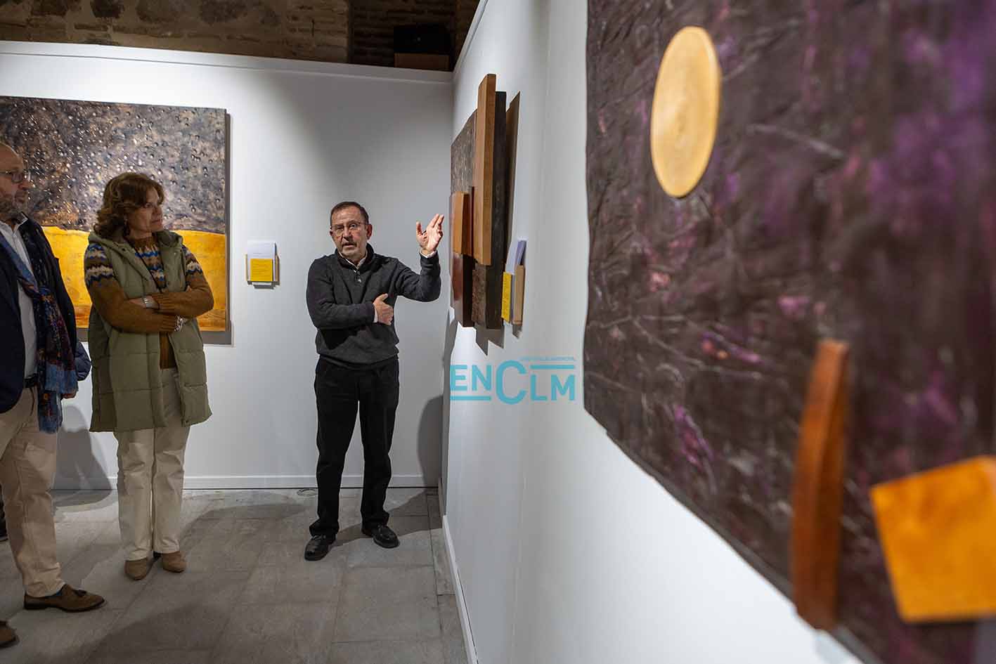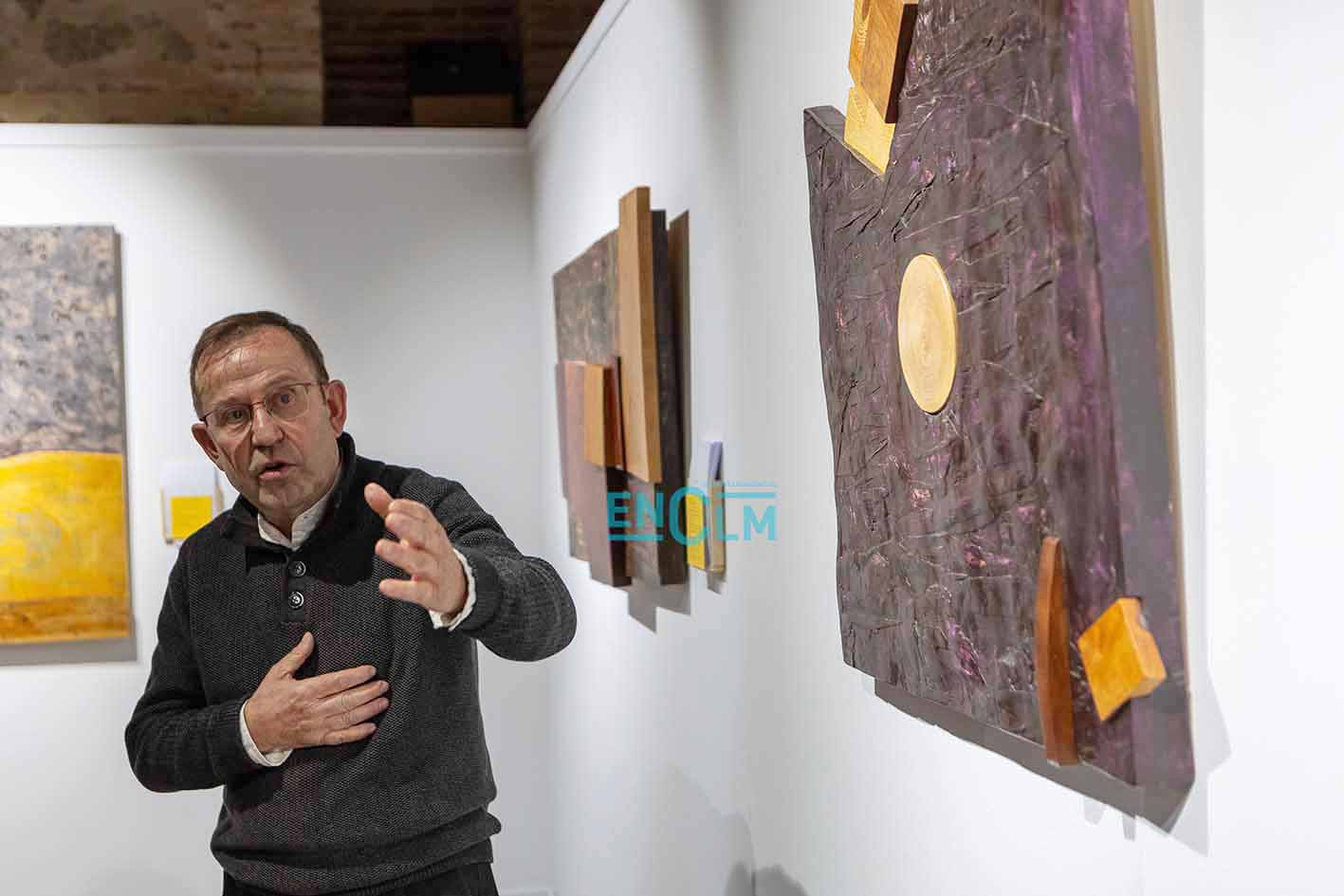 - Marcelo Díaz explica su obra el día de la inauguración de la exposición. Foto: Ángeles Visdómine.