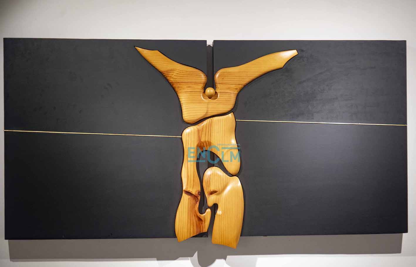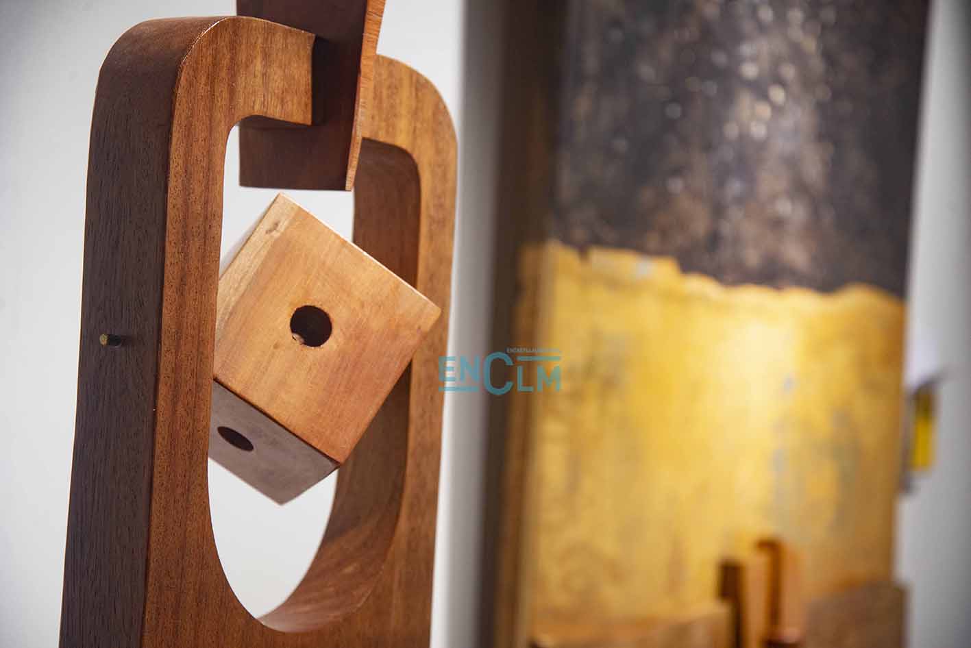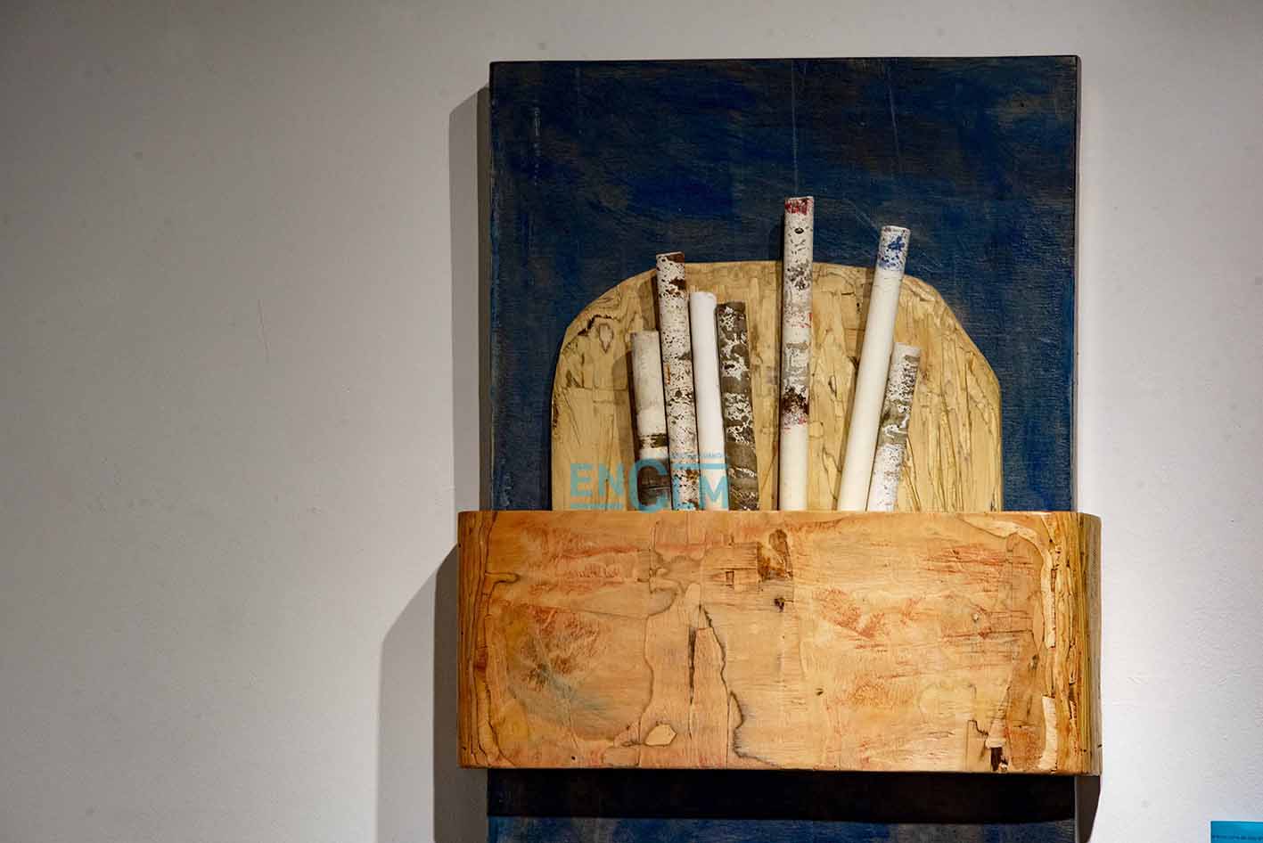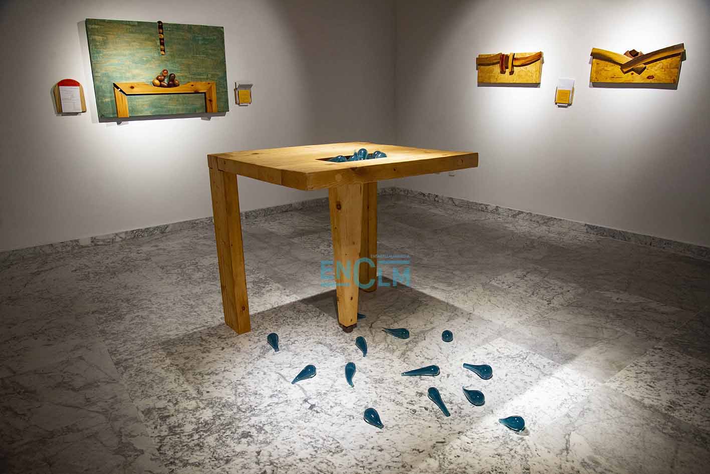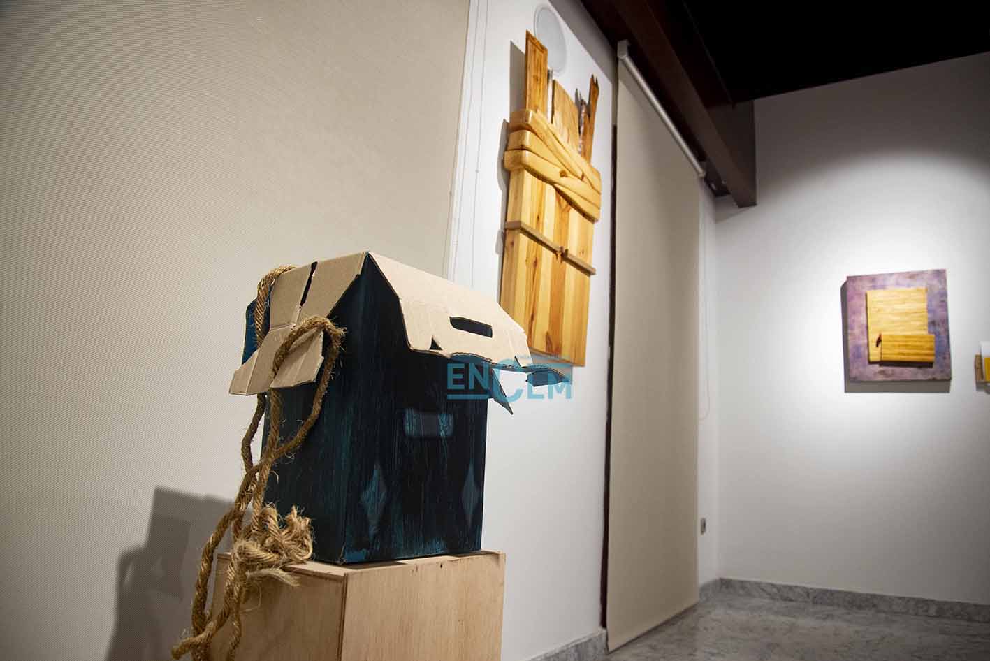 - Marcelo Díaz explica su obra el día de la inauguración de la exposición. Foto: Ángeles Visdómine.