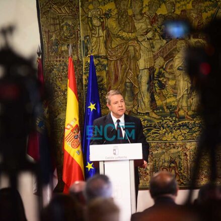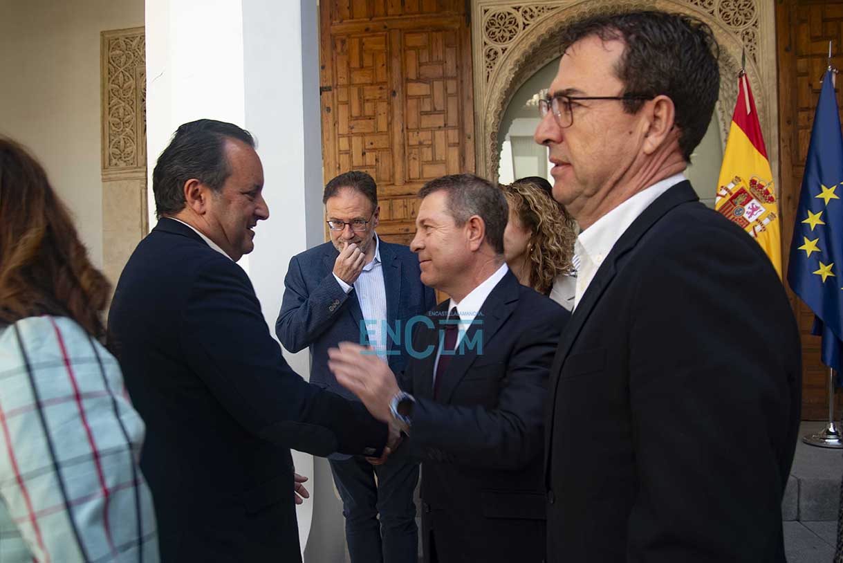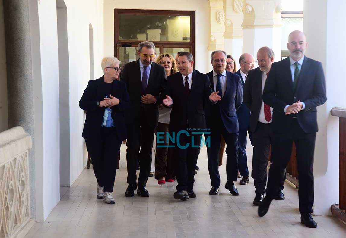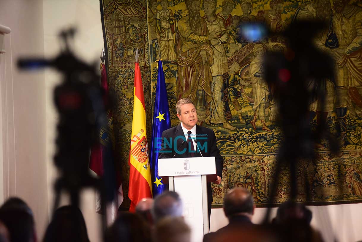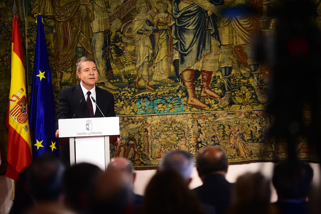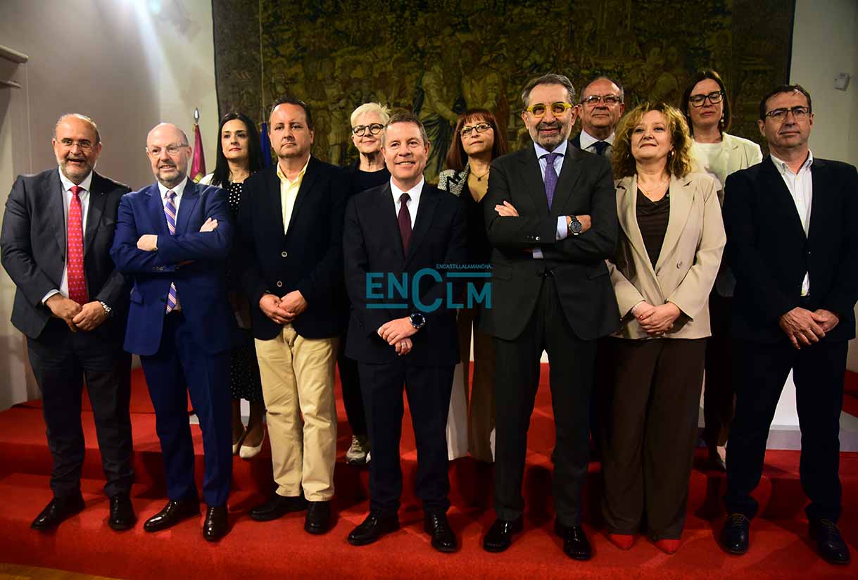 El presidente de la región, Emiliano García-Page. ha presidido la firma, en la que han participado el consejero de Sanidad, Jesús Fernández Sanz, y a representantes de los sindicatos del sector: CESM, CCOO, UGT, CSIF, USAE y SATSE. Fotografías: Rebeca Arango