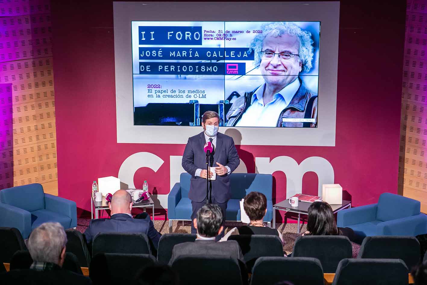 - Toledo, 31 de marzo de 2022.- El consejero de Fomento, Nacho Hernando, clausura el II Foro de Periodismo ‘Jose María Calleja’, organizado por Castilla-La Mancha Media que se celebra en el Auditorio de CMM. (Fotos: D. Esteban González // JCCM)