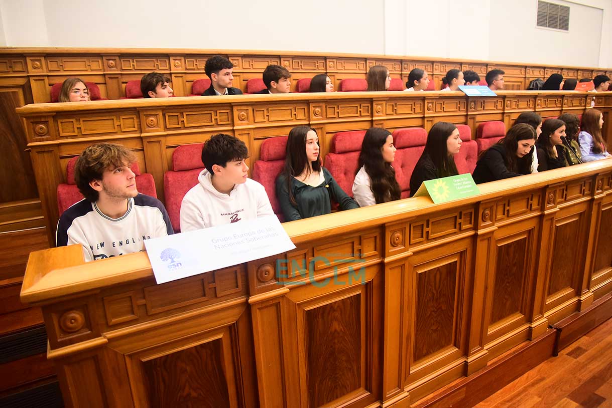 Fotos | Alumnos de institutos dan vida en las Cortes de CLM a un simulado pleno del Parlamento Europeo