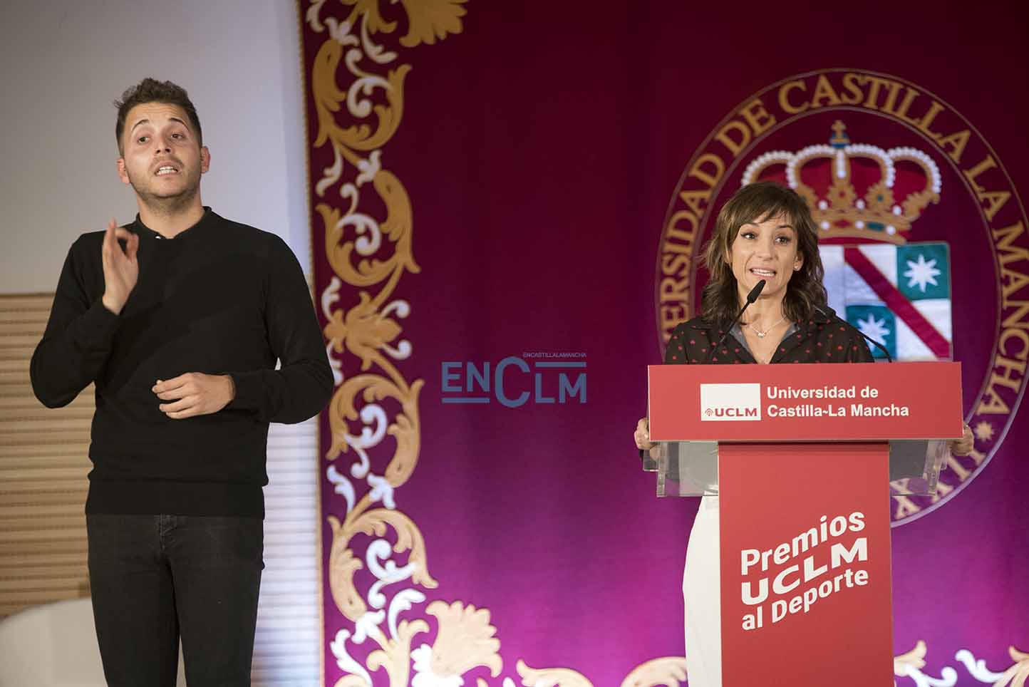 Sandra Sánchez, durante su intervención en la I Gala de los Premios UCLM al Deporte 2021. Foto: Rebeca Arango.
