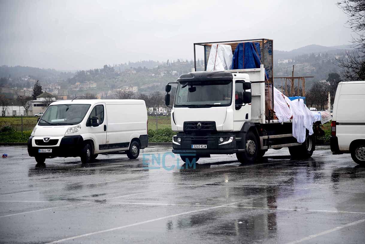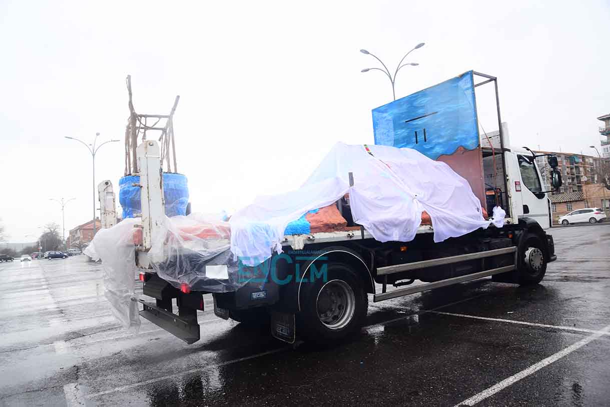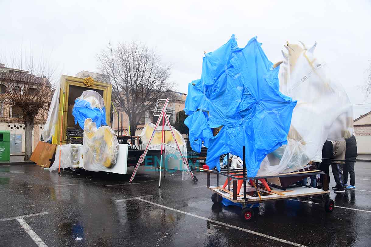 - Miembros de una comparsa recogen tras anunciarse la suspensión del desfile de Carnaval de Toledo. Foto: Rebeca Arango.