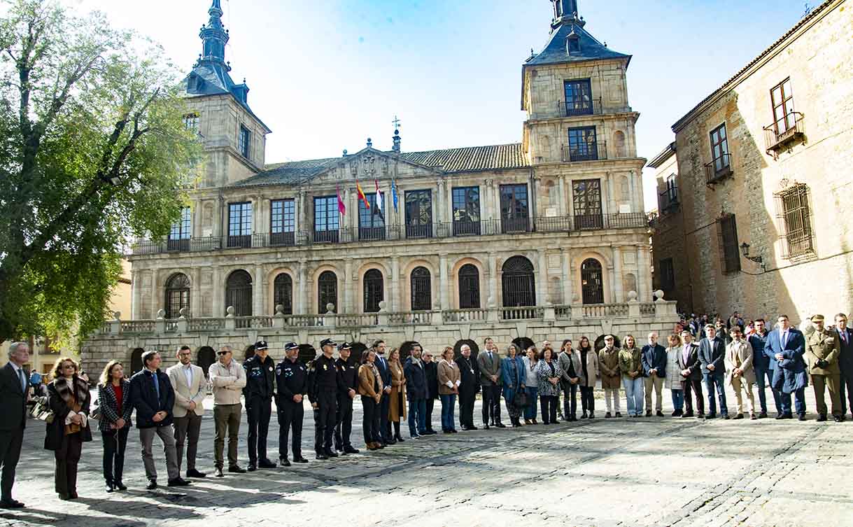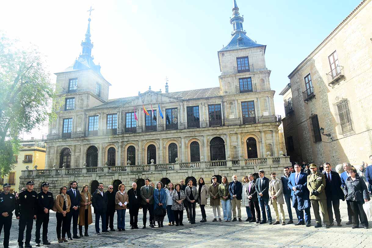 Minuto de silencio por las víctimas de la DANA ante el Ayuntamiento de Toledo. Foto: Rebeca Arango.