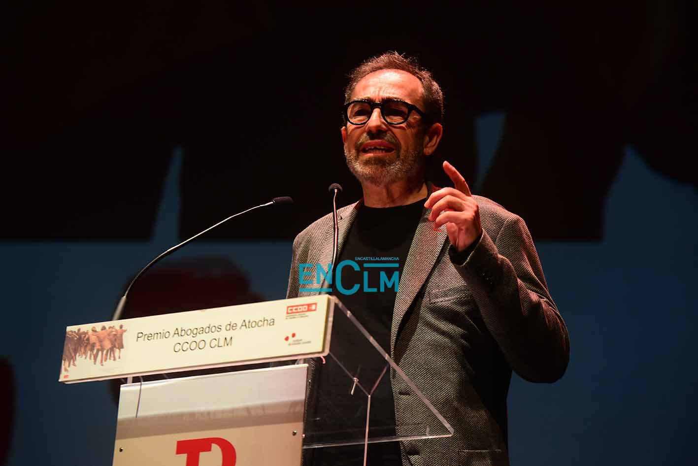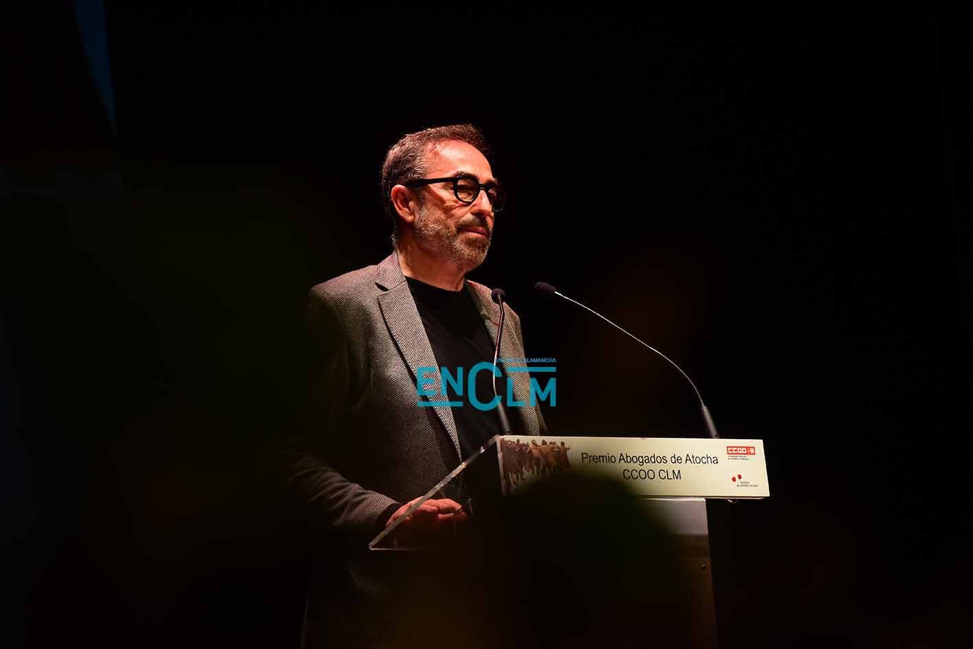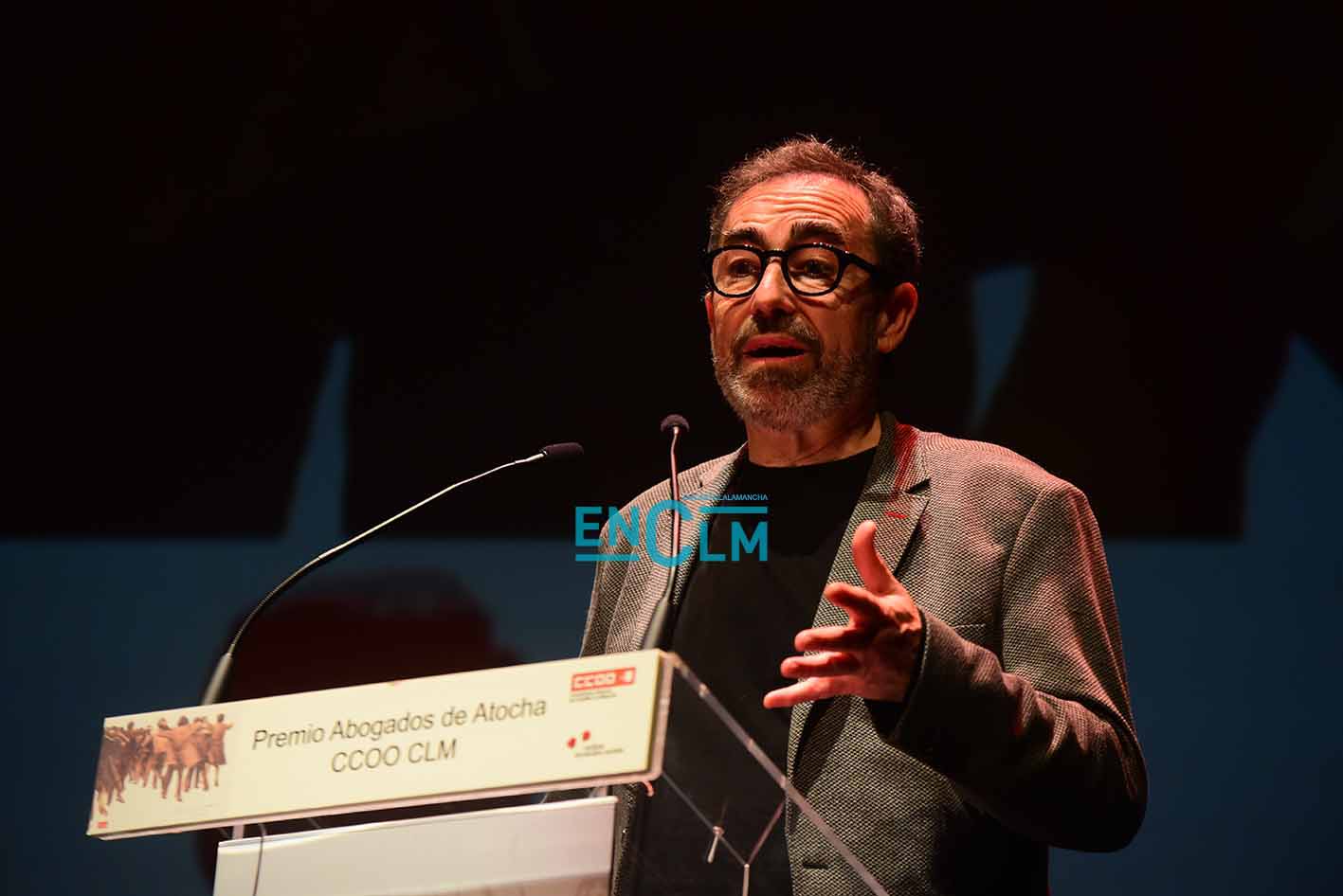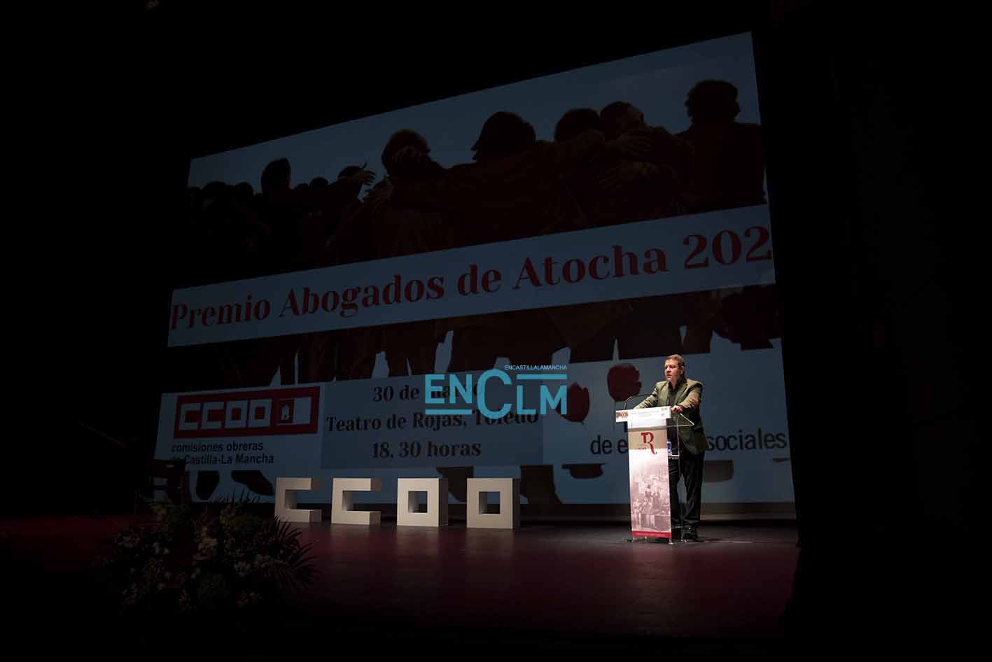 Premio Abogados de Atocha, concedido por CCOO CLM, a Óscar Camps, fundador de Open Arms. Foto: Rebeca Arango.