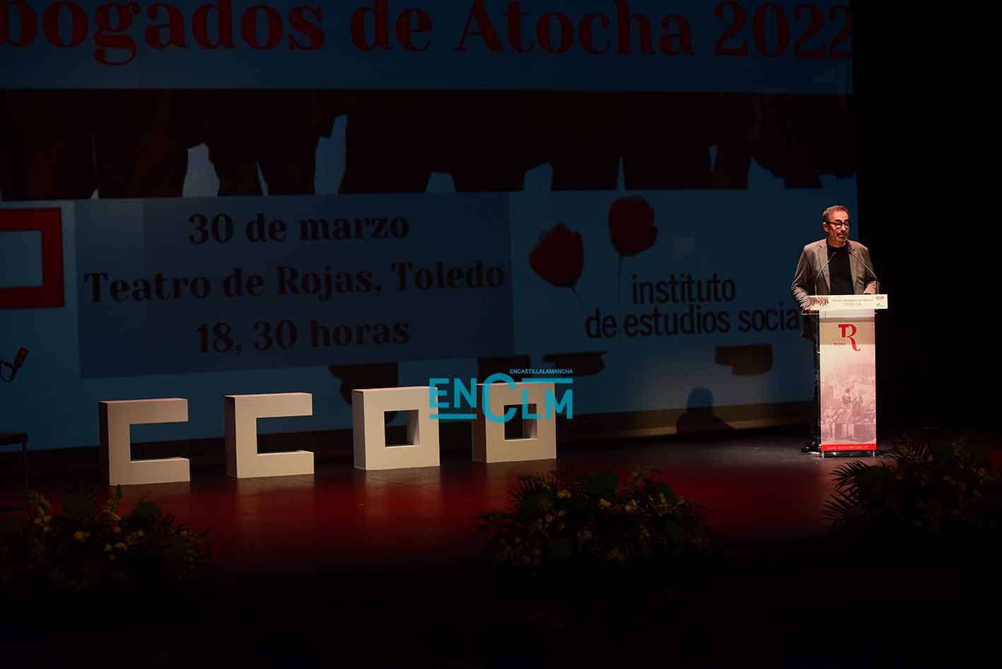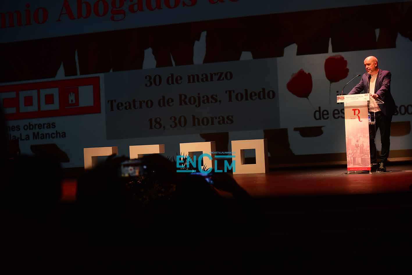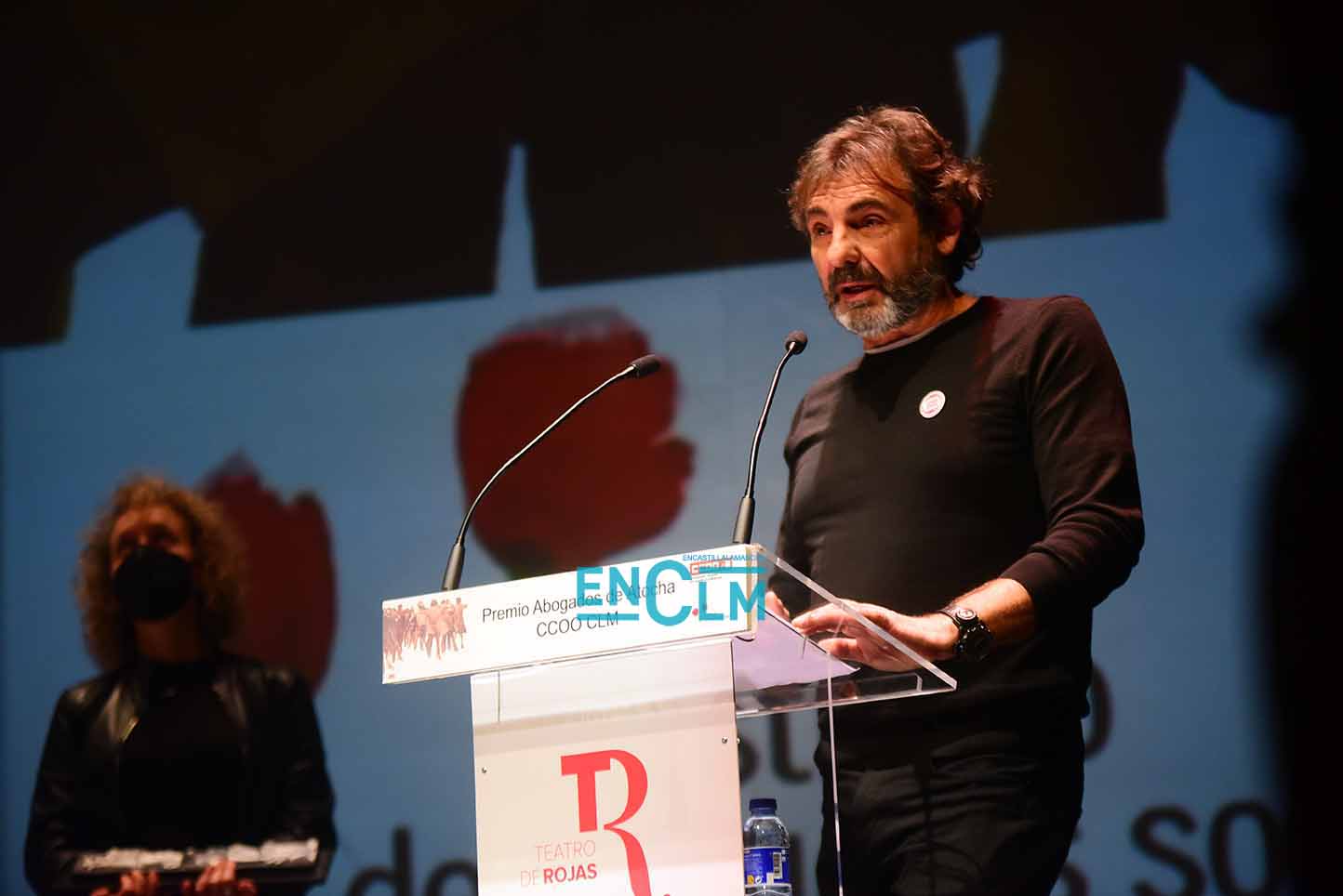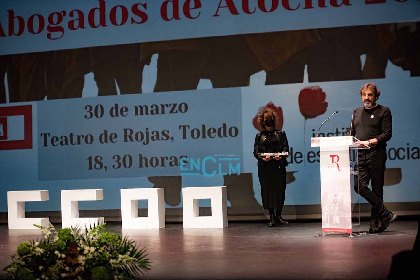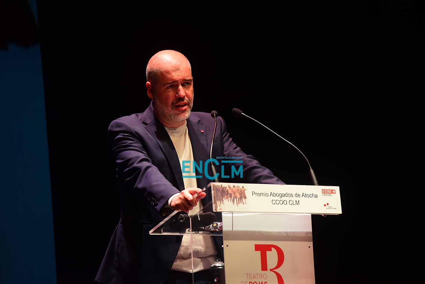 Premio Abogados de Atocha, concedido por CCOO CLM, a Óscar Camps, fundador de Open Arms. Foto: Rebeca Arango.