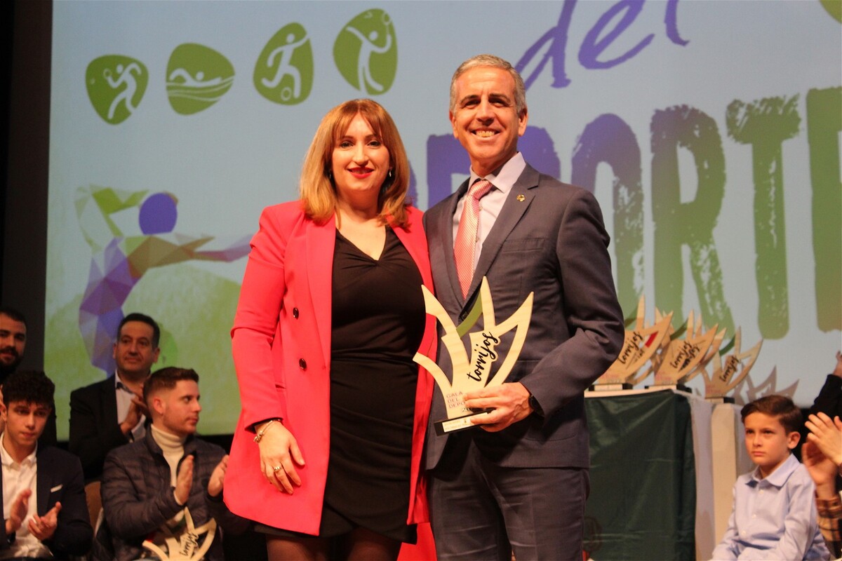 Las distinciones de los “Premios Deportivos Extraordinarios” fueron para FECAM, Ángel Carrillo, presidente del Club Ciclista Torrijeño; Embutidos y Jamones España e Hijos S.A.; Alberto Fernández, campeón olímpico de Tiro en Tokio 2020; Carrera Popular “Villa de Torrijos”. Los premios fueron entregados el sábado 21 de enero en una gala presidida por el alcalde, Nasta Arevalillo; acompañado por el concejal de Deportes, Félix Bandera, y otros ediles. Fotos: Ayuntamiento de Torrijos. También asistieron el delegado provincial de Educación, Cultura y Deportes, José Gutiérrez; la vicepresidenta de la Diputación Ana María Gómez, también concejala en Torrijos; y la diputada regional socialista Charo García.