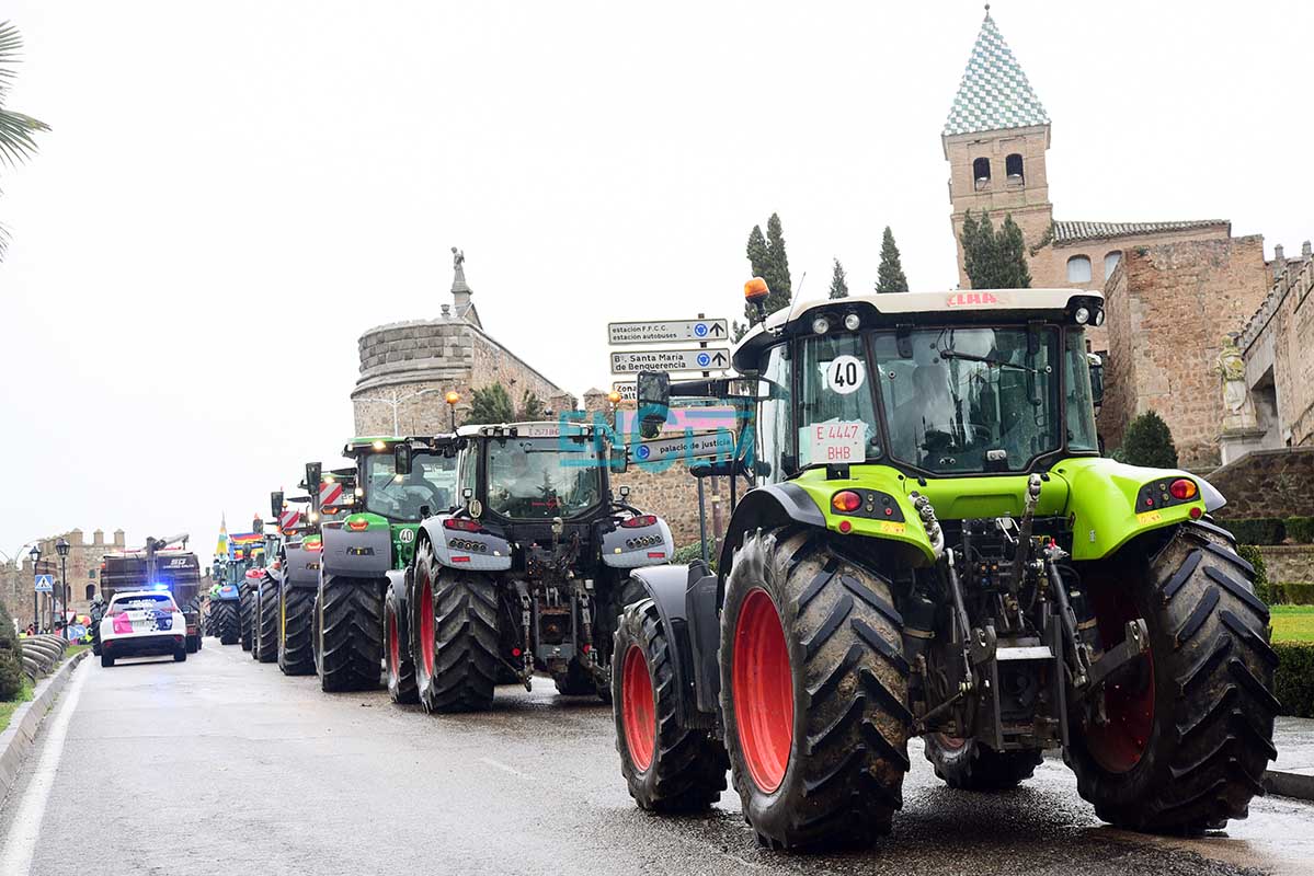100 de 102Toledo, al igual que otros puntos de España y Castilla-La Mancha, se llena de tractores con motivo de las protestas realizadas por miles de agricultores. Fotografía: Rebeca Arango.