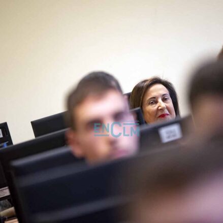 La ministra, que también ha visitado las instalaciones académicas, ha mantenido una reunión con una representación del personal ucraniano que recibe formación en el Toledo Training Coordination Centre (TTCC). Fotografías: Rebeca Arango