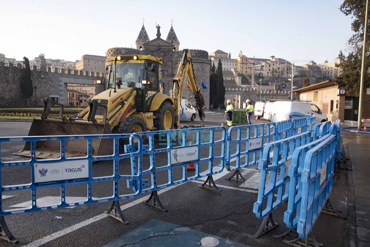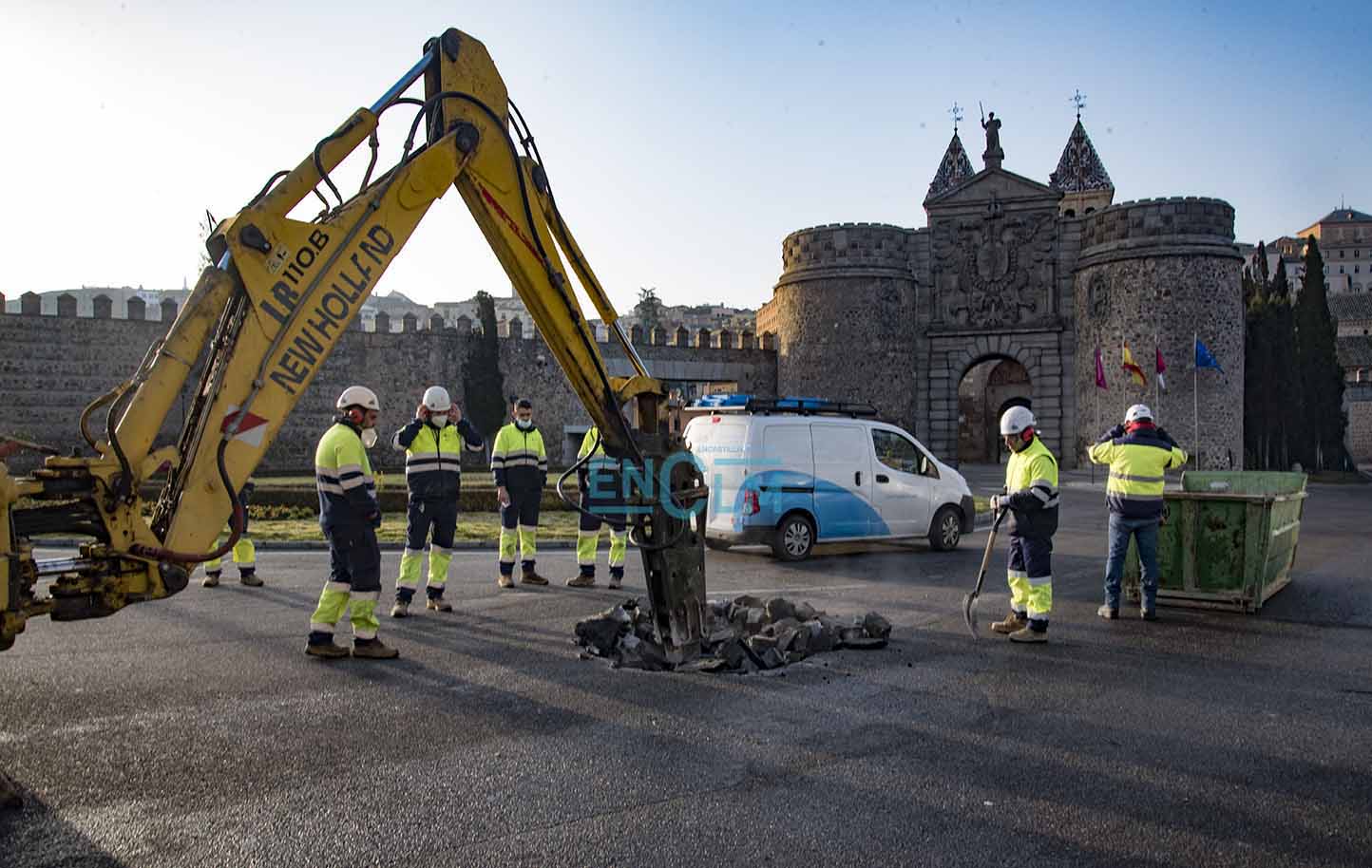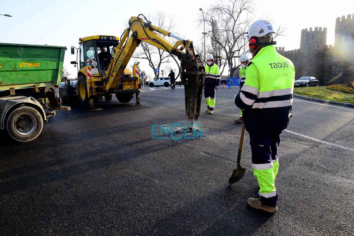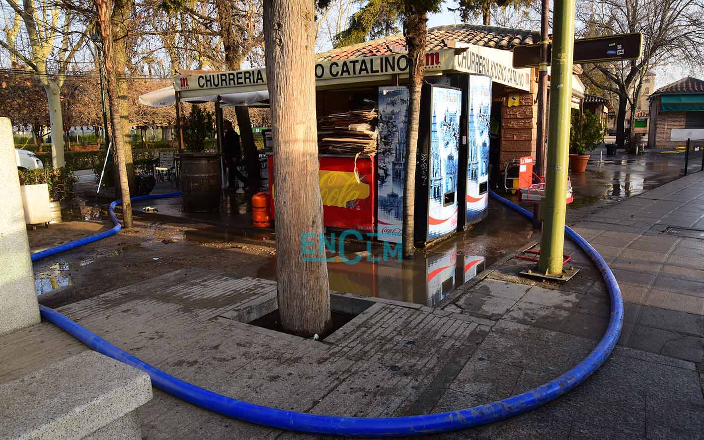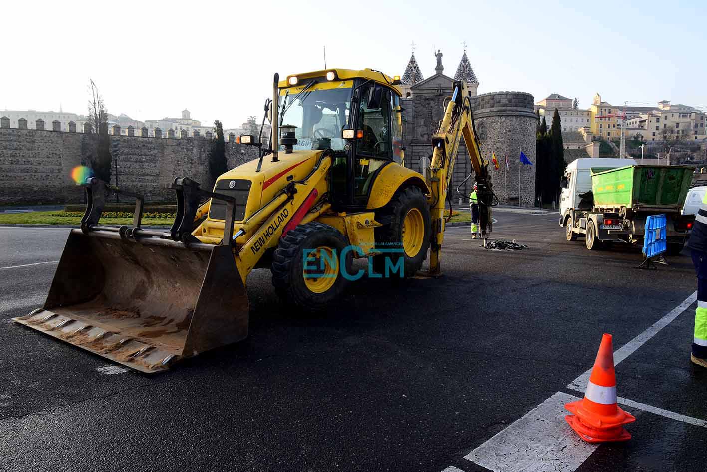 La rotura de la avería ha ocurrido en la rotonda de la Puerta de Bisagra. Foto: Rebeca Arango.