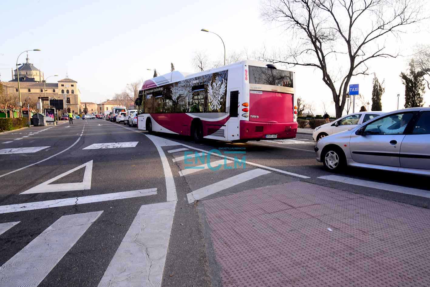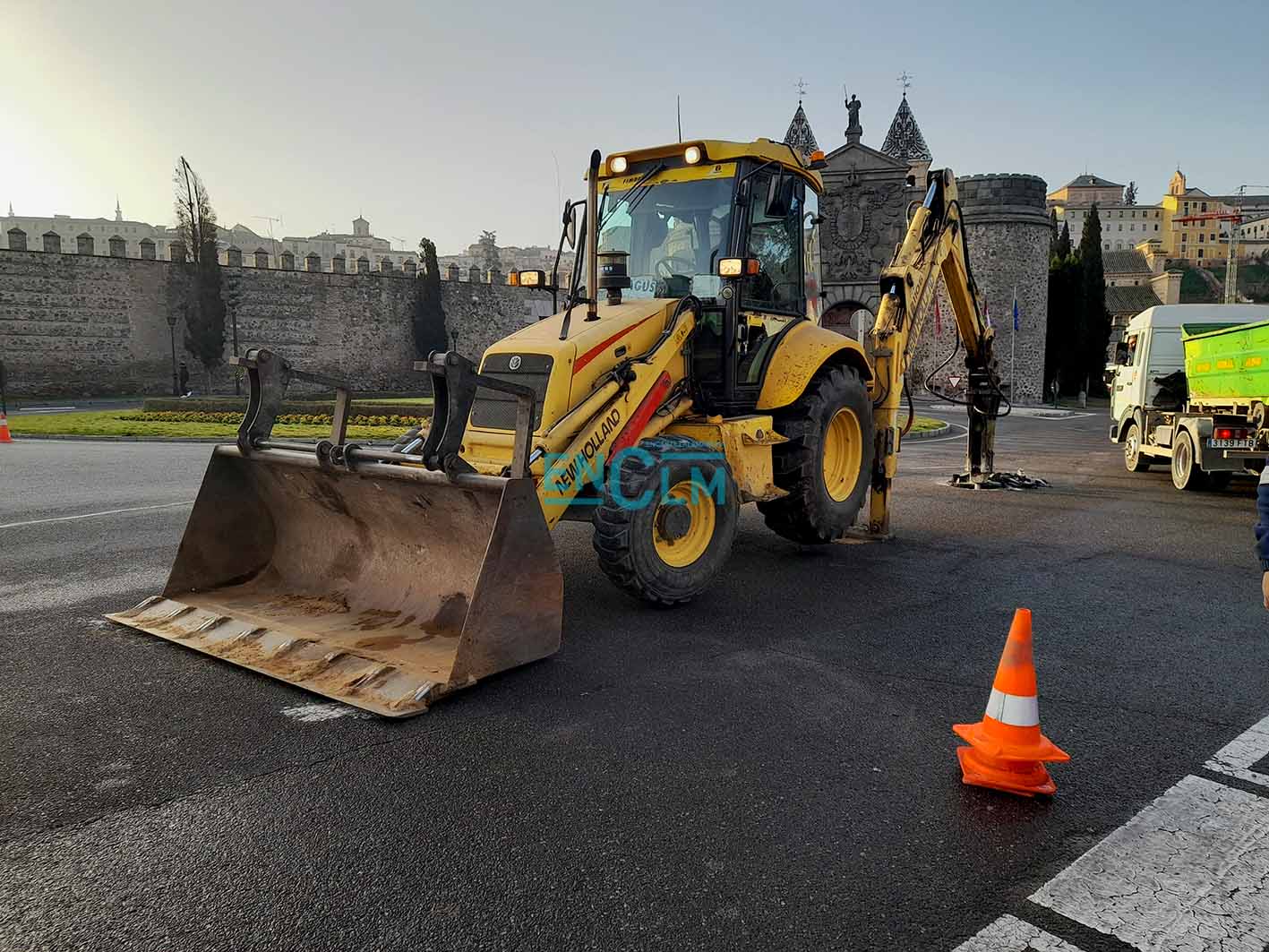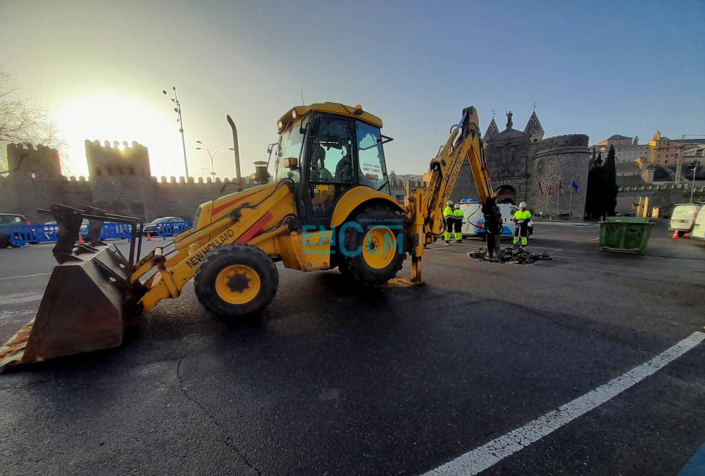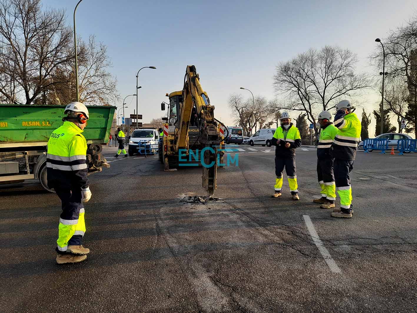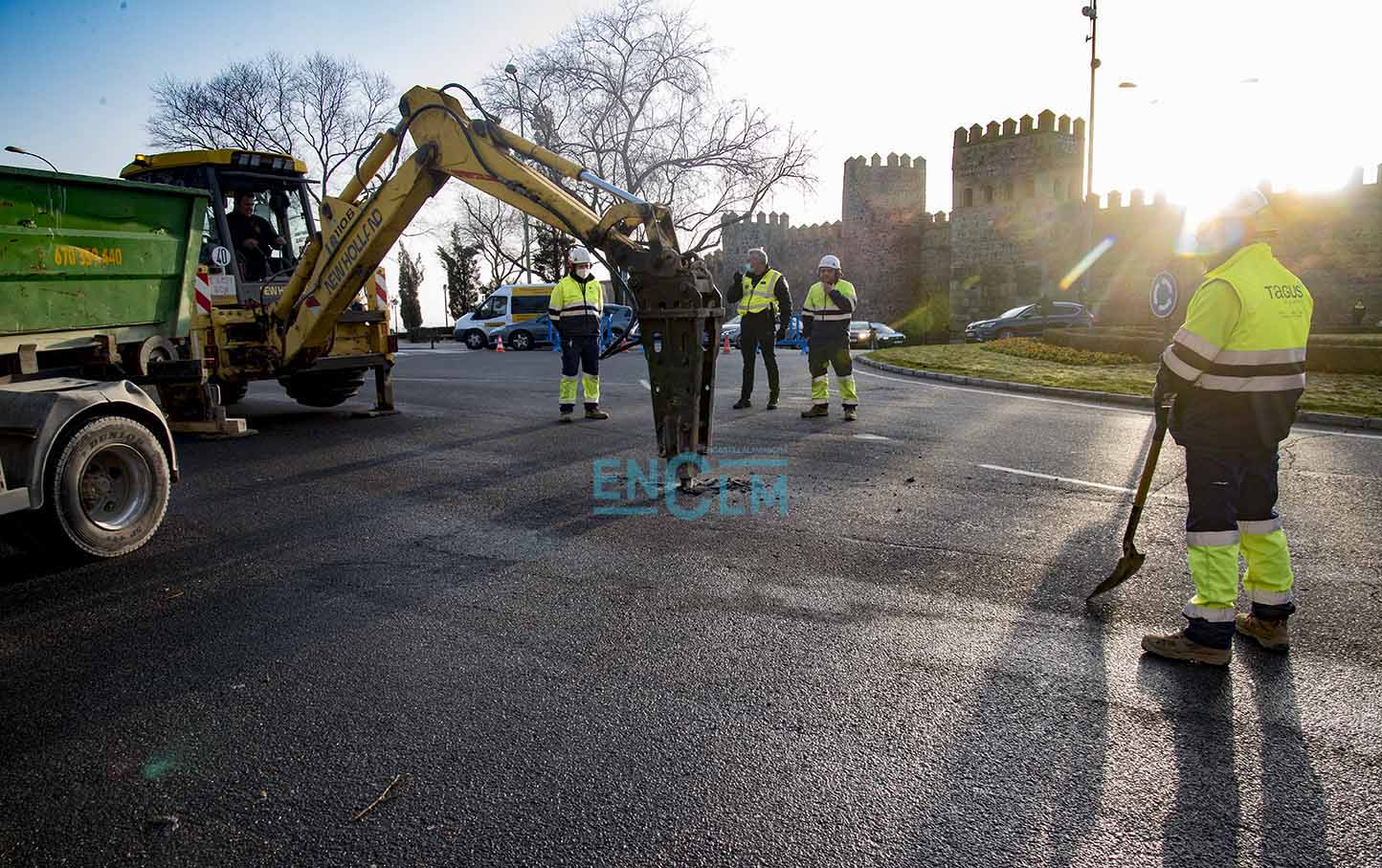 La rotura de la avería ha ocurrido en la rotonda de la Puerta de Bisagra. Foto: Rebeca Arango.