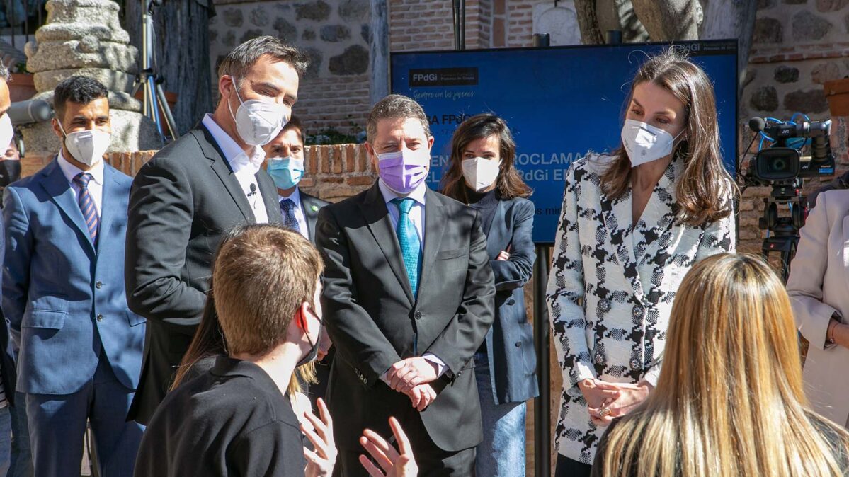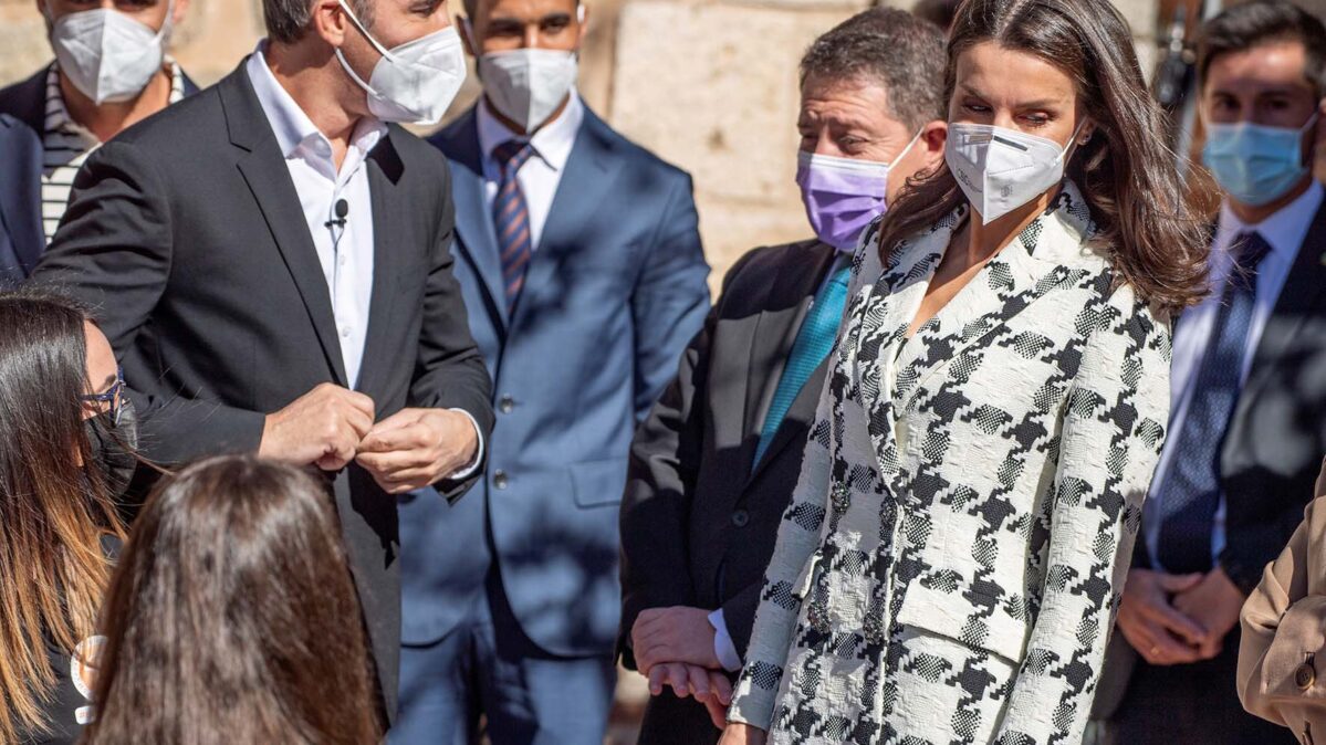 - GRAF6595. TOLEDO, 17/03/2021.- La reina Letizia visitó este miércoles Toledo para asistir al acto de proclamación del ganador del premio «Empresa 2021». También se enmarca en este acto la final del «Reto Emprendedor», una iniciativa de la Fundación en la que han participado más de un centenar de alumnos de centros educativos de Castilla-La Mancha que, durante cuatro semanas, han planteado soluciones creativas a las cuestiones planteadas por esta institución. EFE/ Imael Herrero