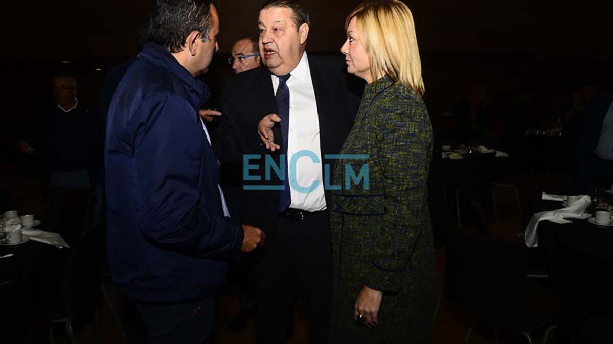 51 de 126Tolón, entre Mar G. Illán, directora de encastillalamancha.es; y Jesús Fernández Vaquero, presidente de las Cortes de CLM.