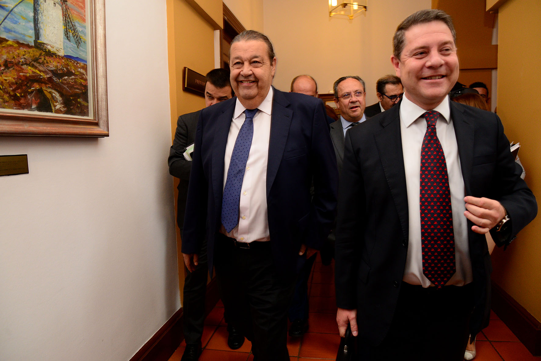 43 de 126Jesús Fernández Vaquero y Emiliano García-Page, por los pasillos de las Cortes , en el Debate del Estado de la Región de 2017. Fotografía: Rebeca Arango