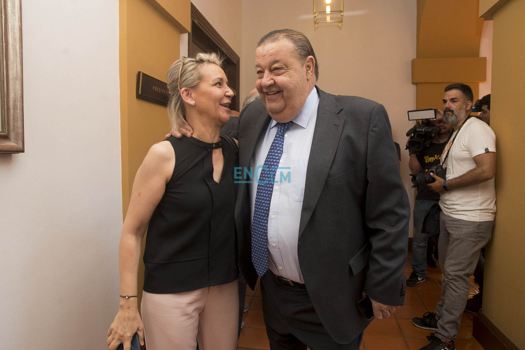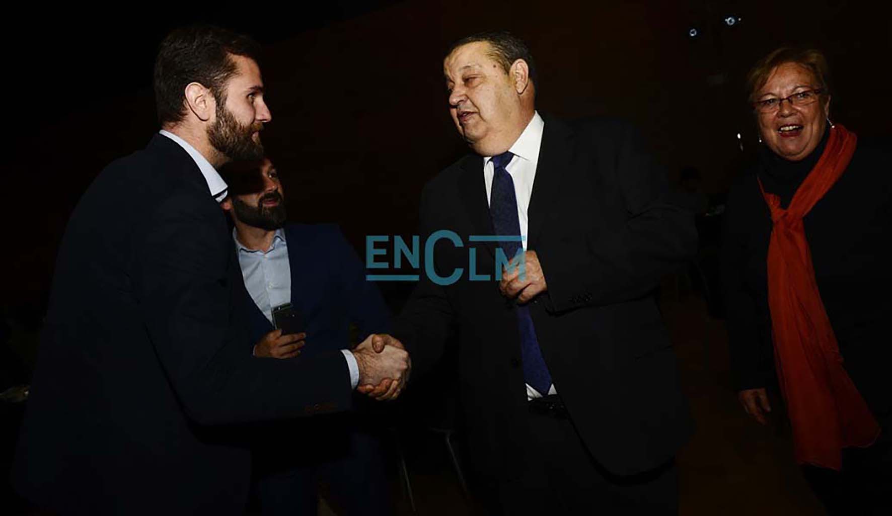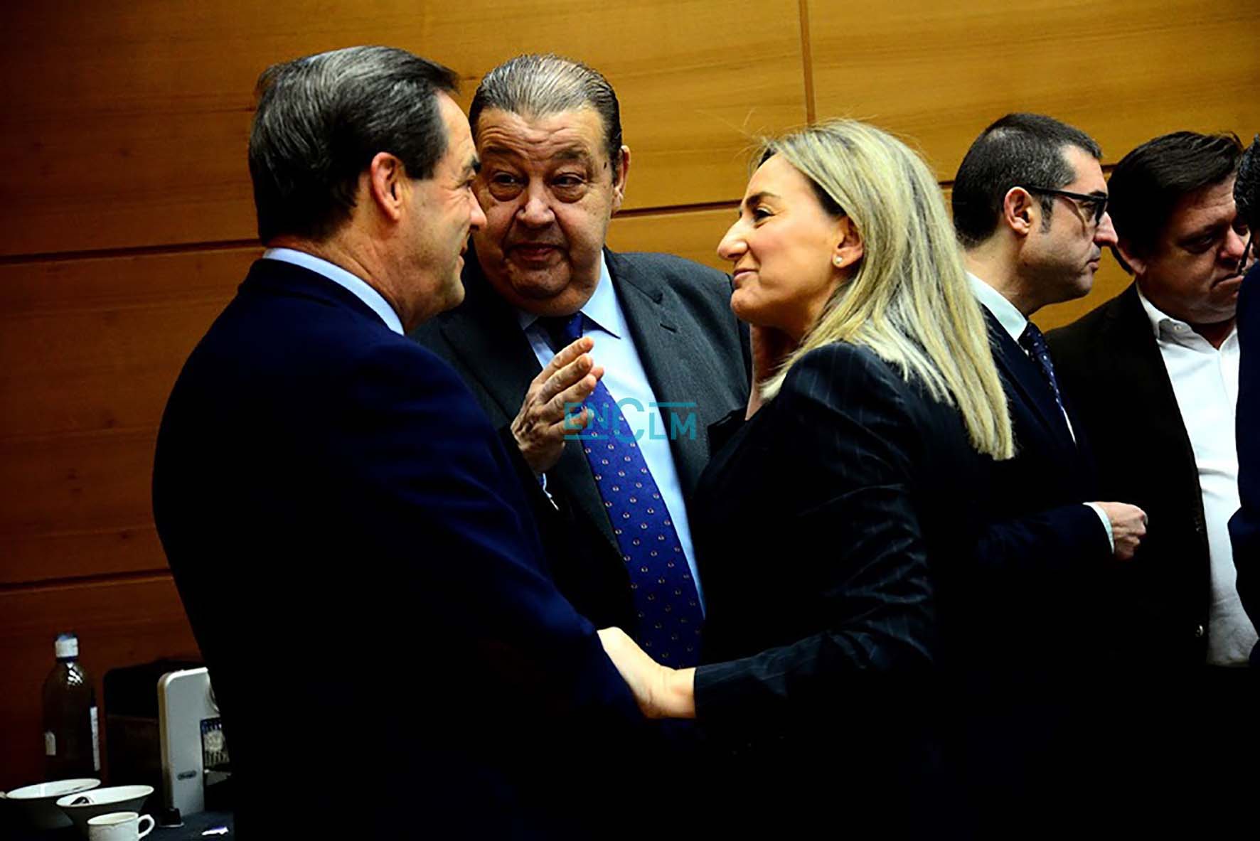 51 de 126Tolón, entre Mar G. Illán, directora de encastillalamancha.es; y Jesús Fernández Vaquero, presidente de las Cortes de CLM.