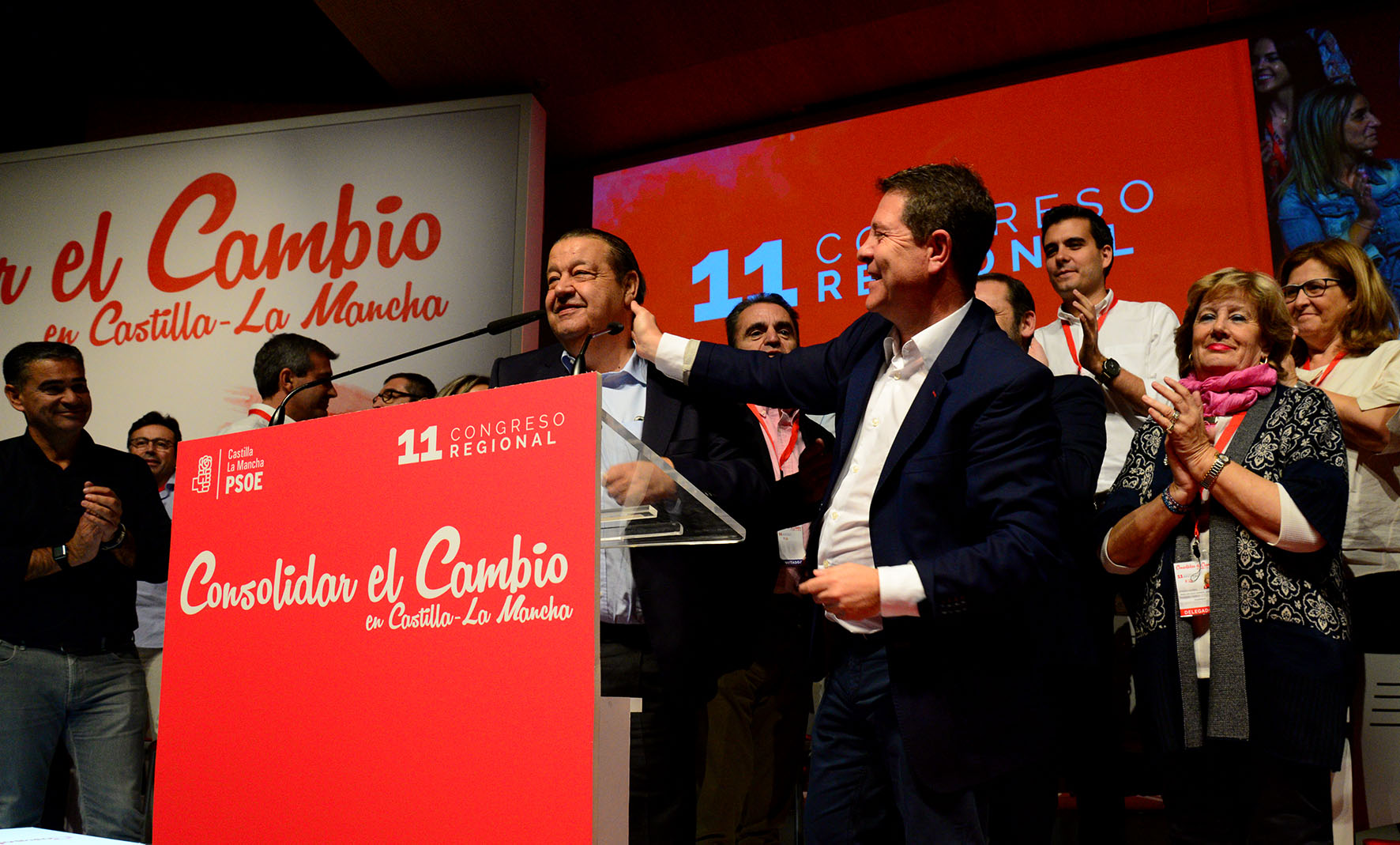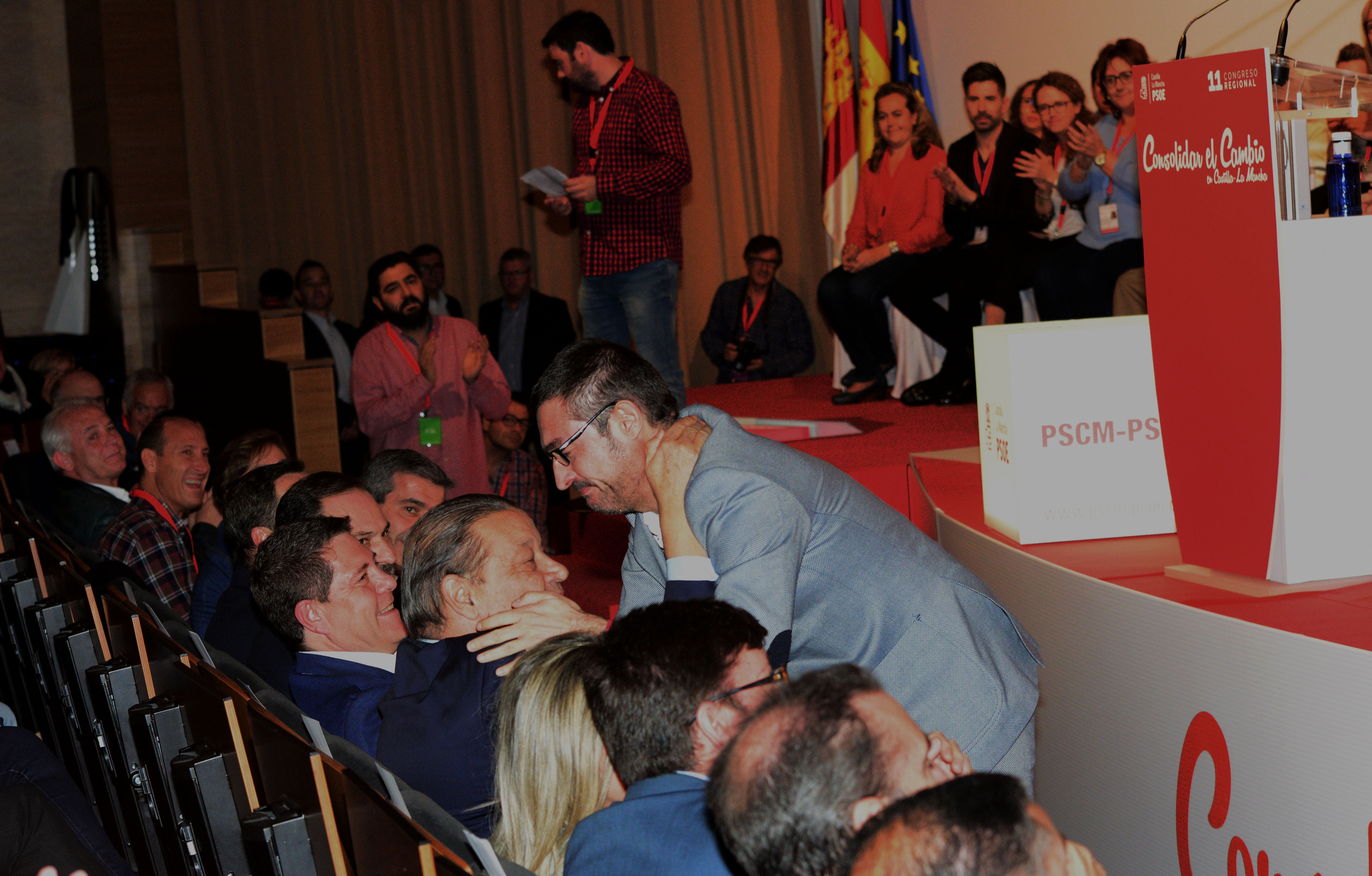 92 de 126Vaquero es saludado cariñosamente por Page, en el Congreso del PSOE de CLM celebrado en octubre de 2017, en el que dejó de ser secretario de organización del partido.