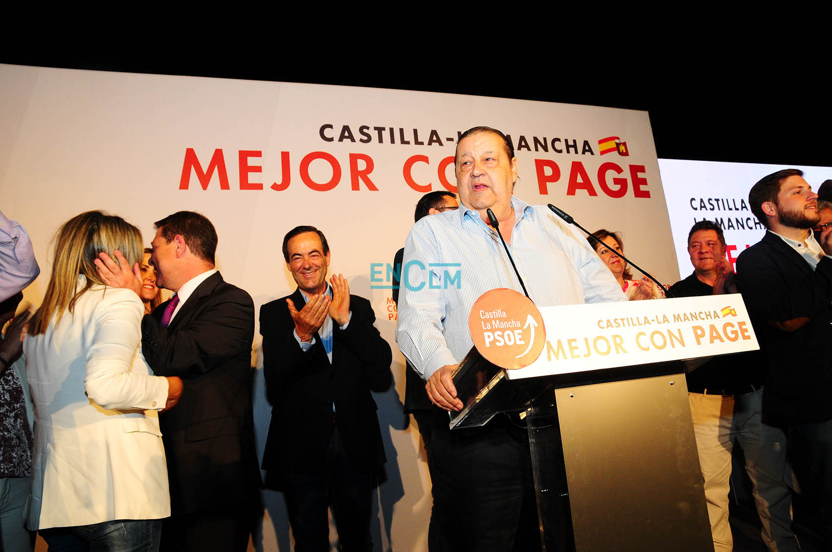 40 de 126Un abrazo con Page ante el aplauso de Bono, durante la noche electoral de 2015.