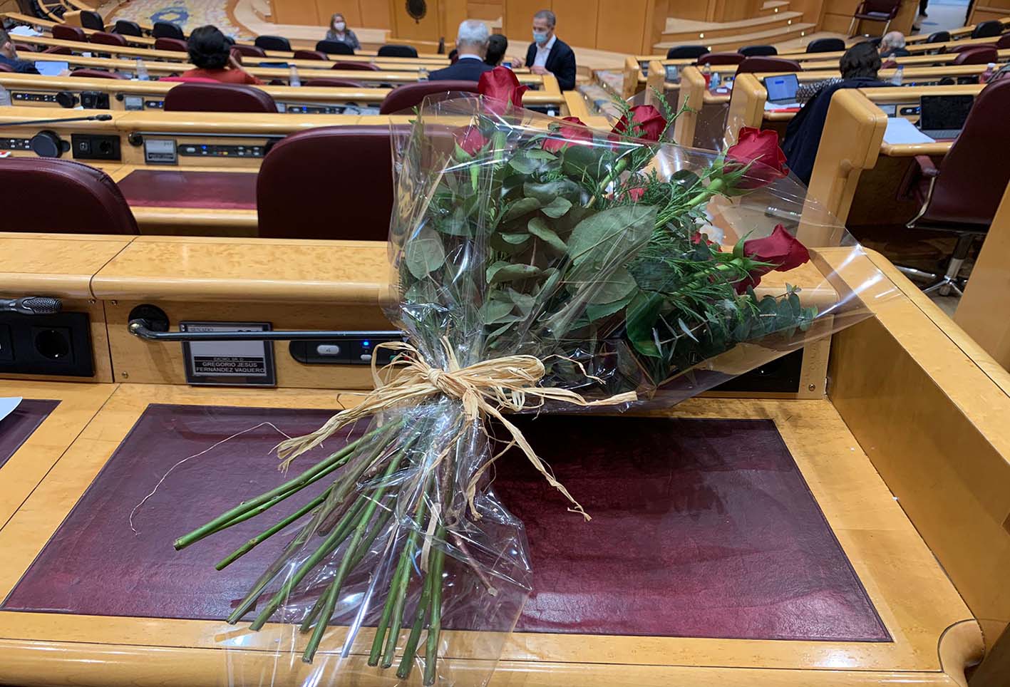11 de 126Rosas rojas en el Senado como homenaje a Jesús Fernández Vaquero.