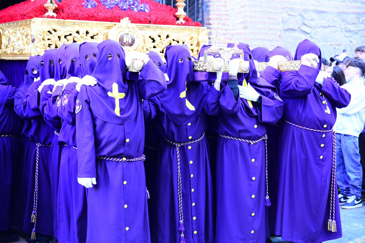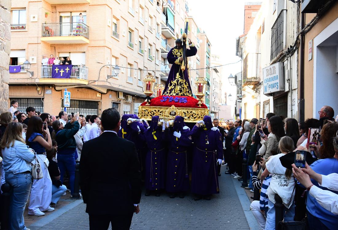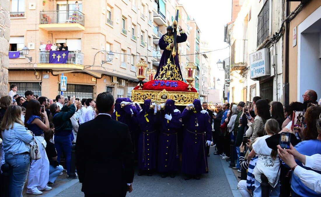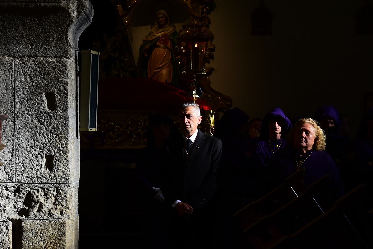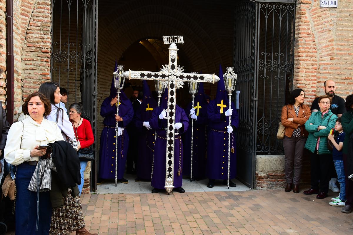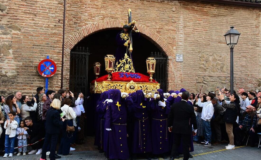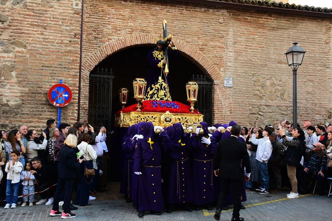 El Nazareno salía a las 7 de la tarde por la puerta de su templo, la iglesia de Santiago en el centro histórico de la Ciudad. Es una de las imágenes más veneradas en la procesión del Santo Entierro del Viernes Santo en Talavera. Fotos: Ángel Centellas